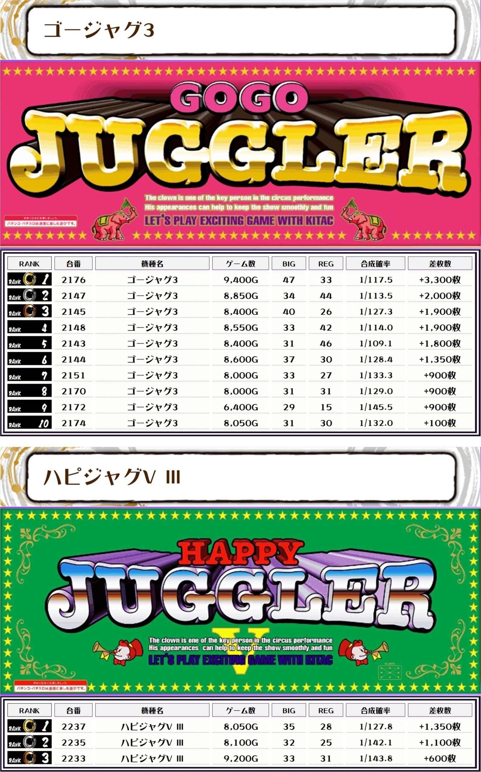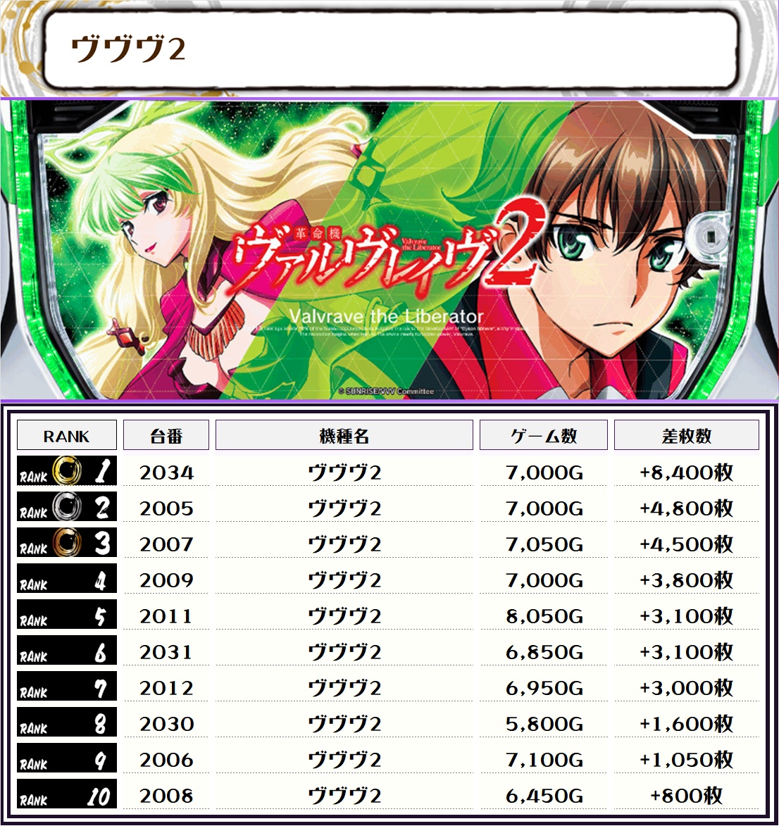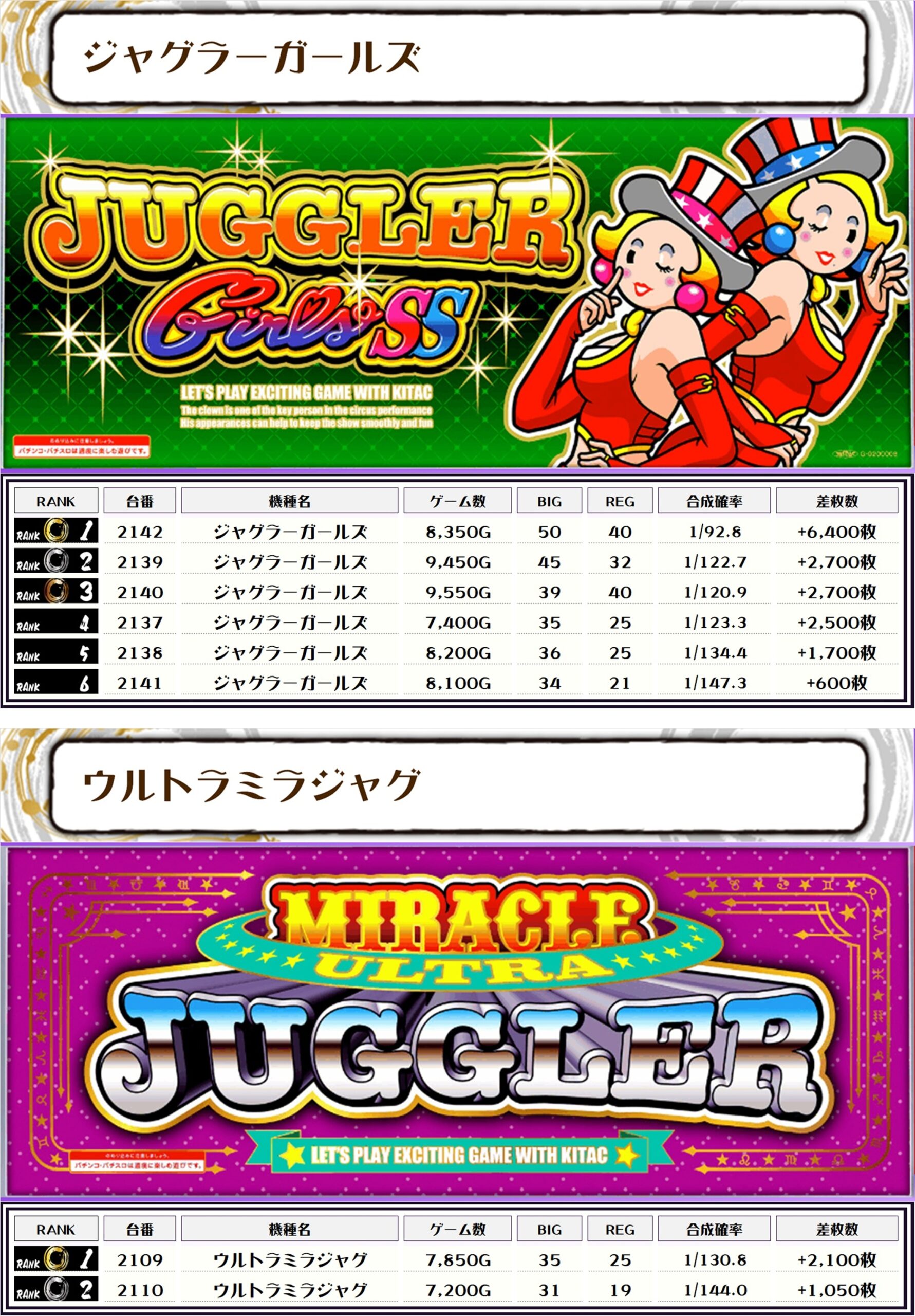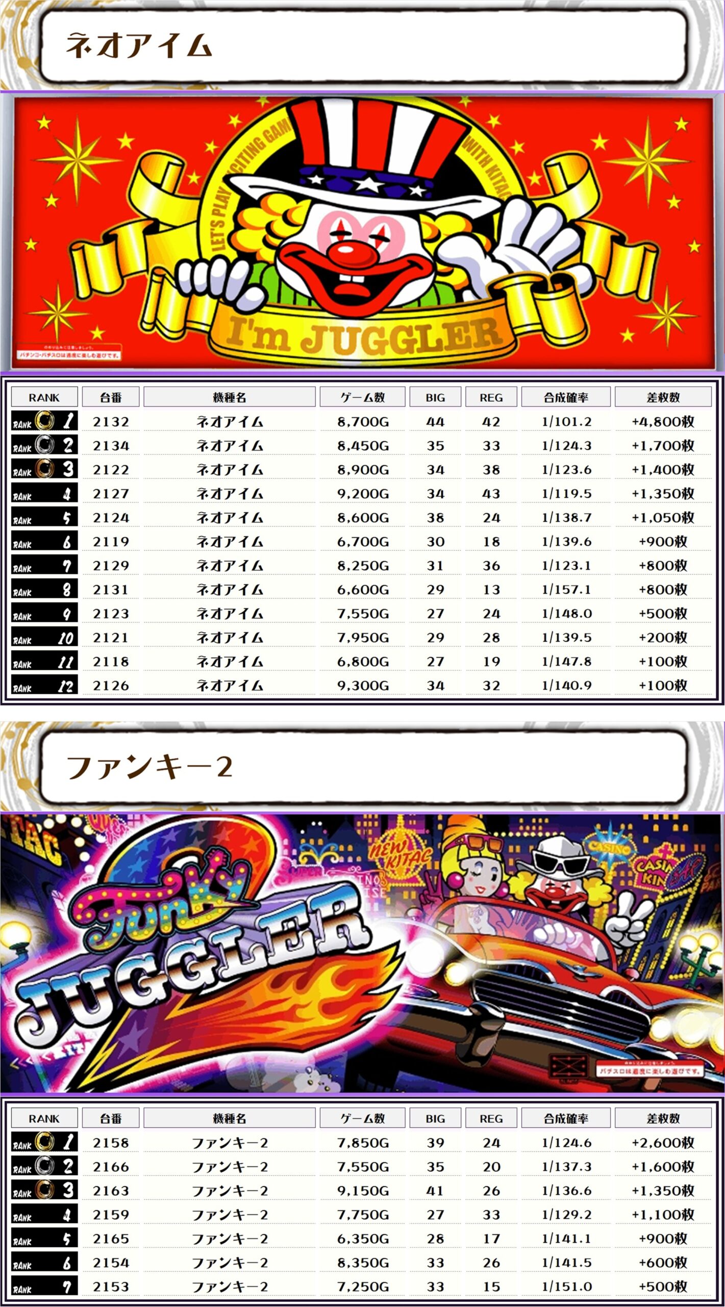 それでは、この日の【機種別差枚ランキング】を見ていきましょう❗️