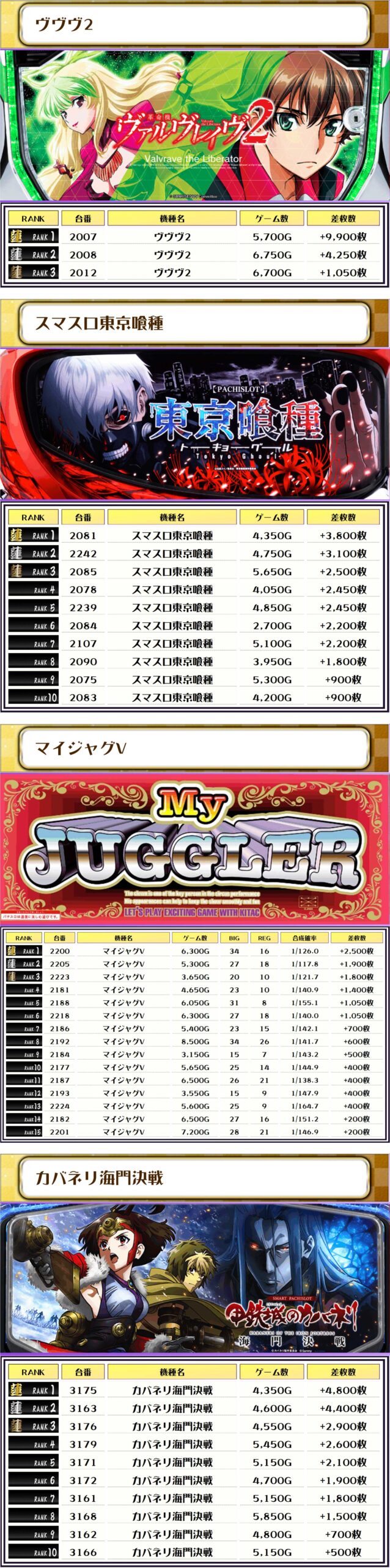 それでは、この日の【機種別差枚ランキング】を見ていきましょう❗️