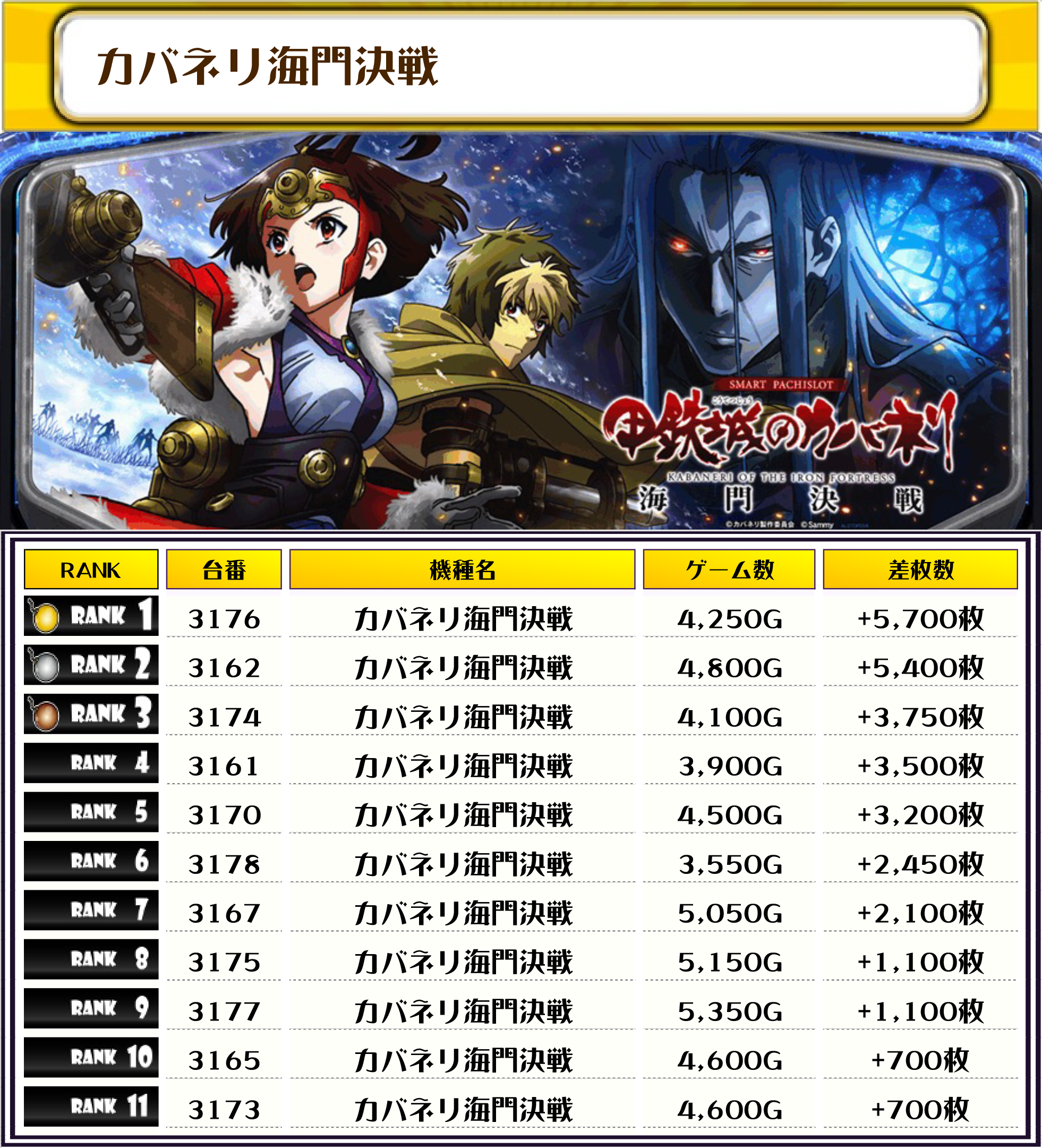 最後に、この日の店内差枚ランキングをご覧あれ❗️