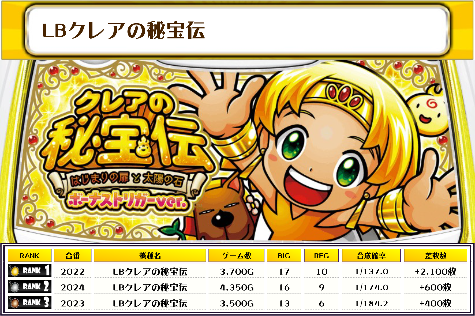 LBクレアの秘宝伝は全台が差枚数プラス、Lダークネス8.7は3台中2台が差枚数プラスと特に勝率が高かったようだ🔥