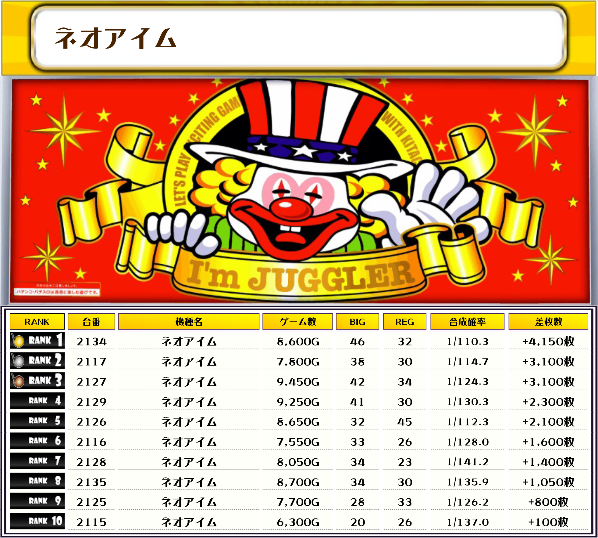 いつものように、ピックアップしたのは高稼働かつ勝率の高かった機種だぞ💥💥