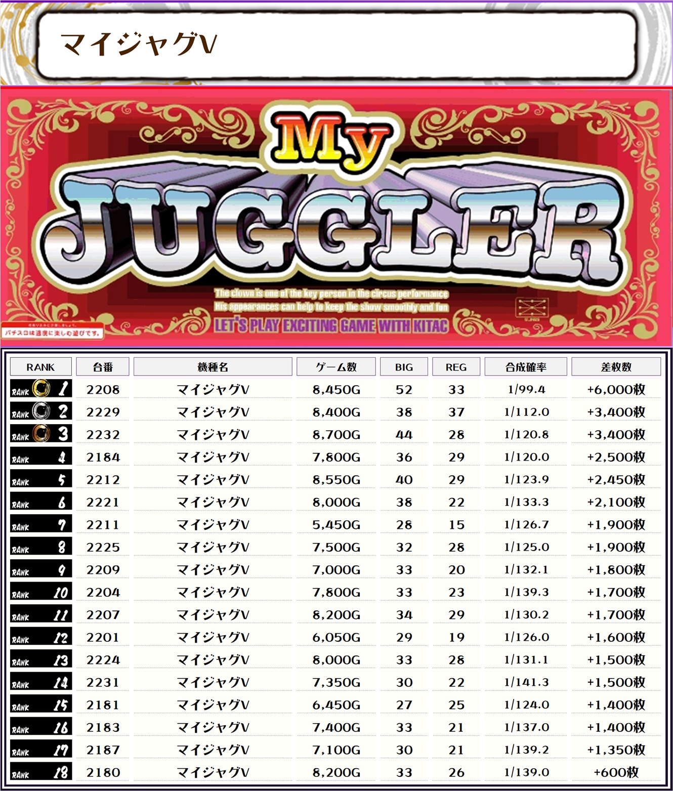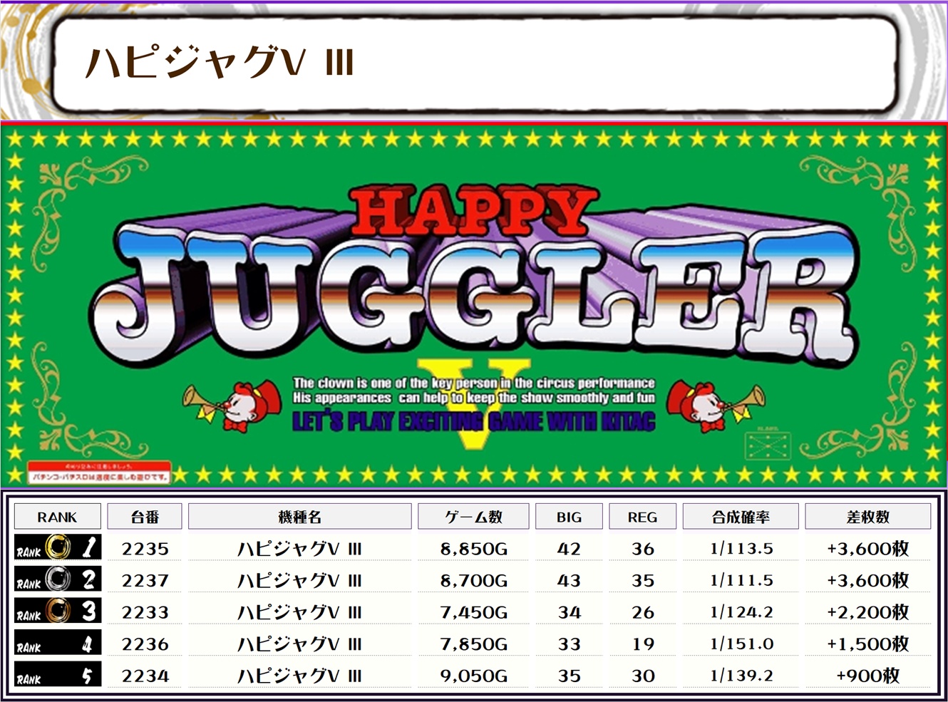 それでは、この日の【機種別差枚ランキング】を見ていきましょう❗️