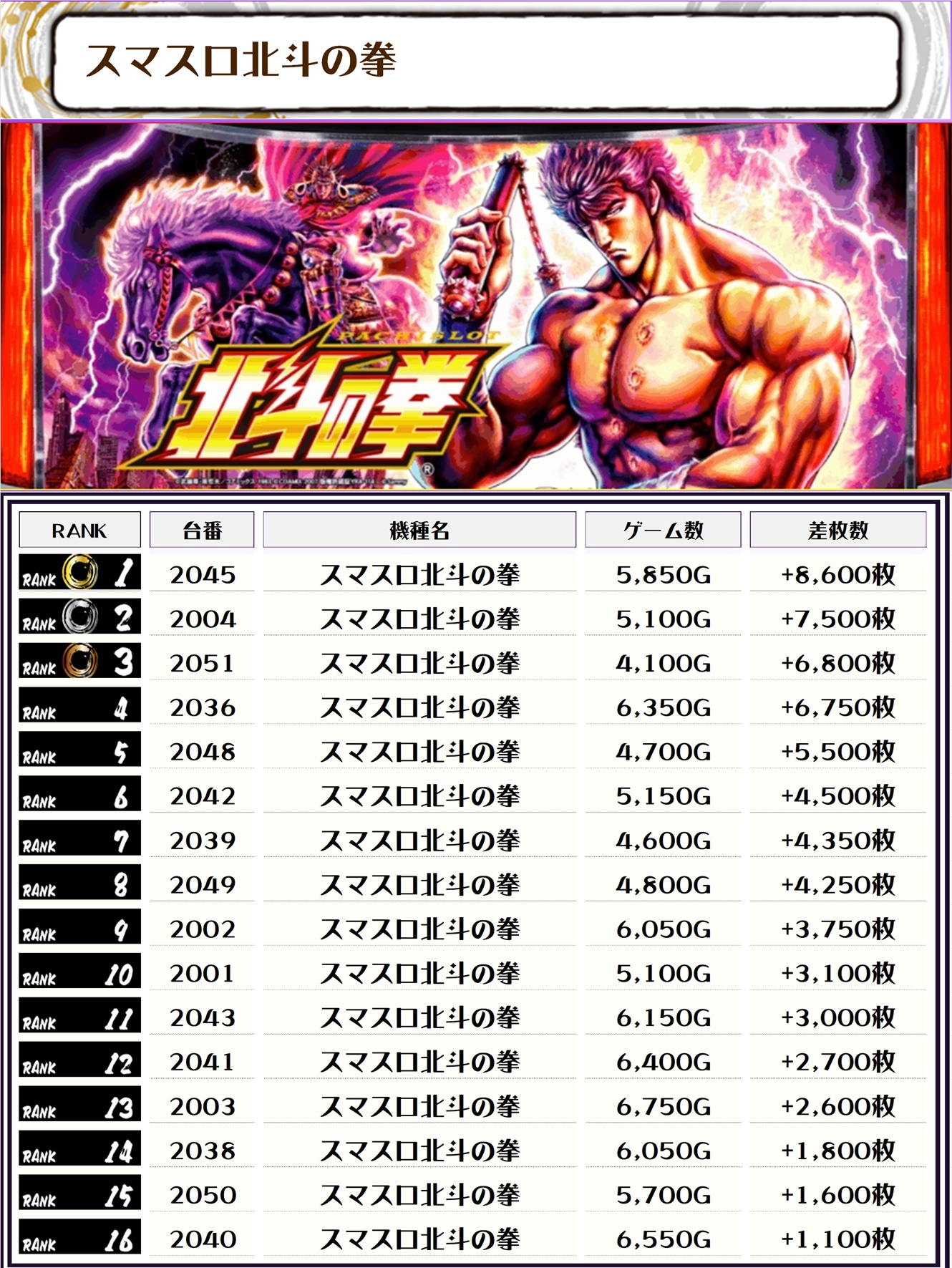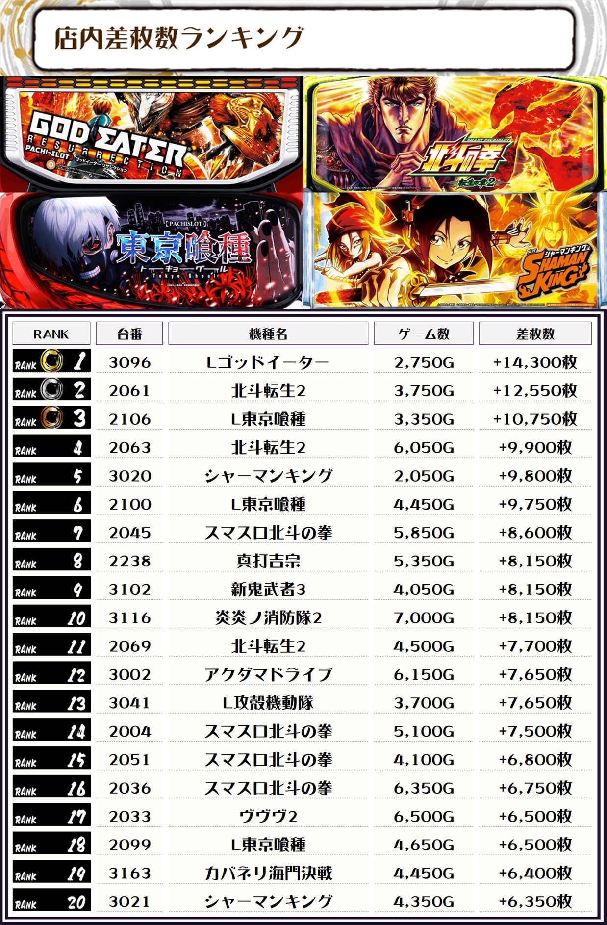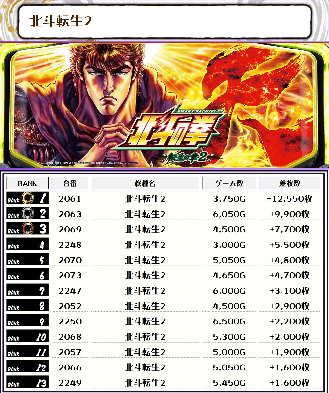 2位には【北斗転生2・2061番台】の+12,550枚、3位は【L東京喰種・2106番台】の+10,750枚がランクインっ🏆🏆🏆