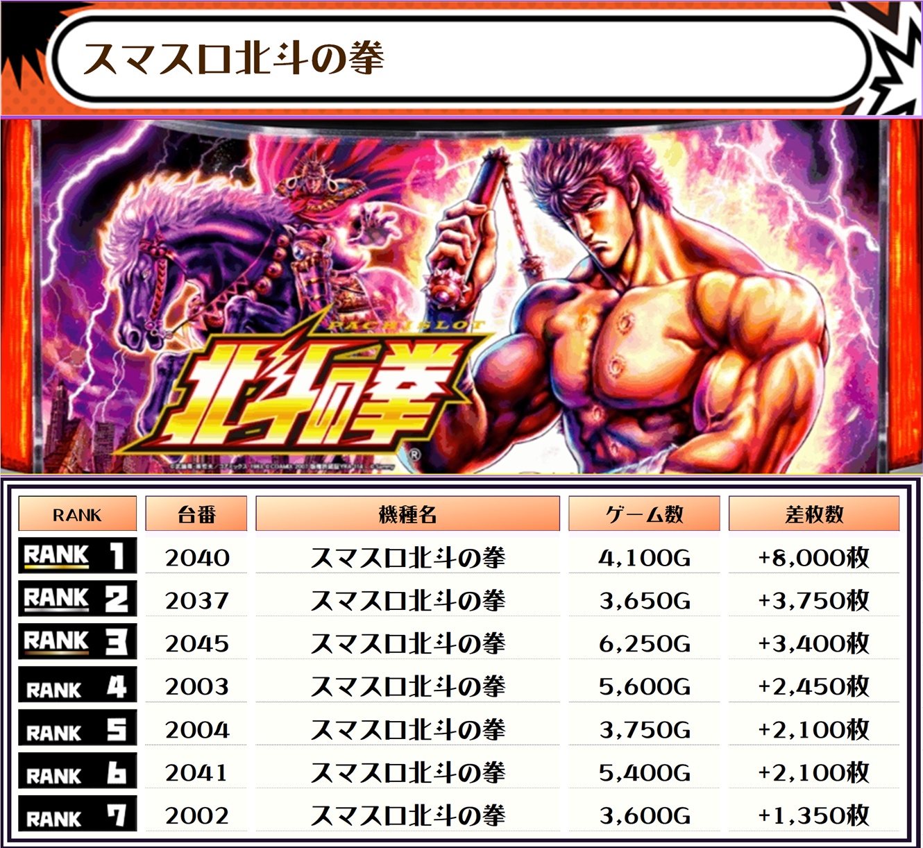 それでは、この日の【機種別差枚ランキング】を見ていきましょう❗️