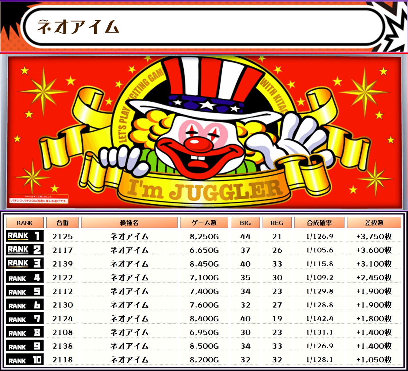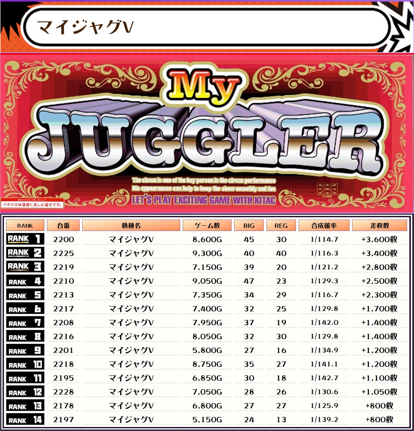 今回ピックアップしたのは、稼働が目立っていて優秀台が多かったと思われる機種になります🔍