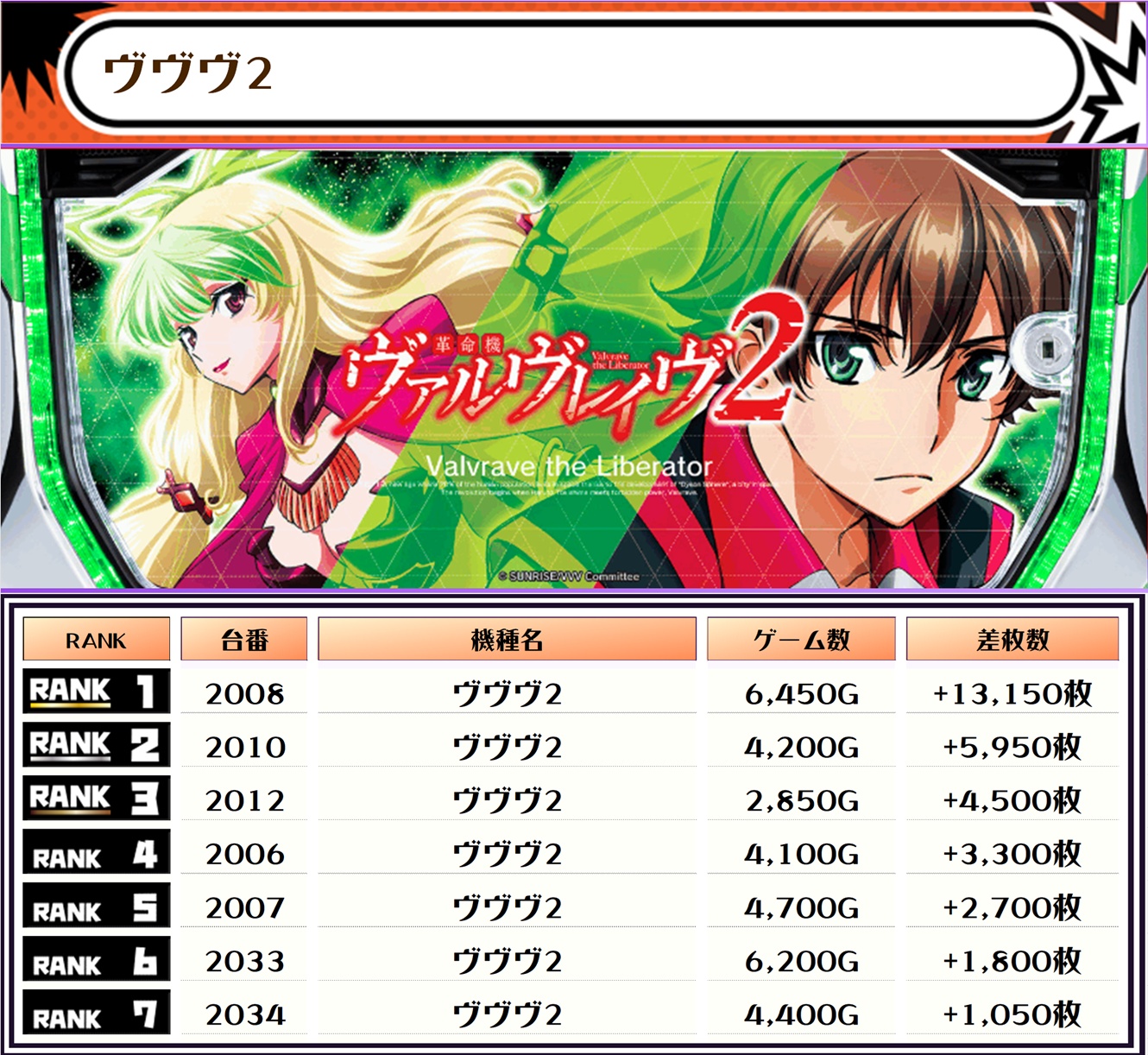 この日、全体の差枚トップに輝いたのは【ヴヴヴ2・2008番台】で+13,150枚‼️