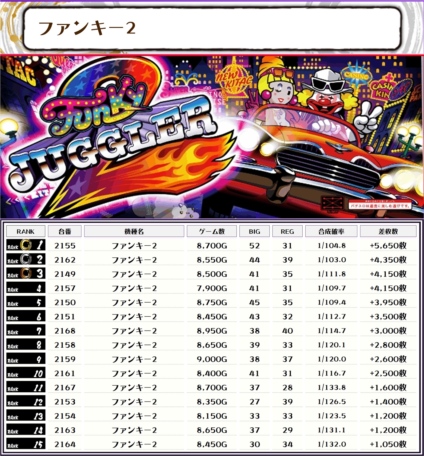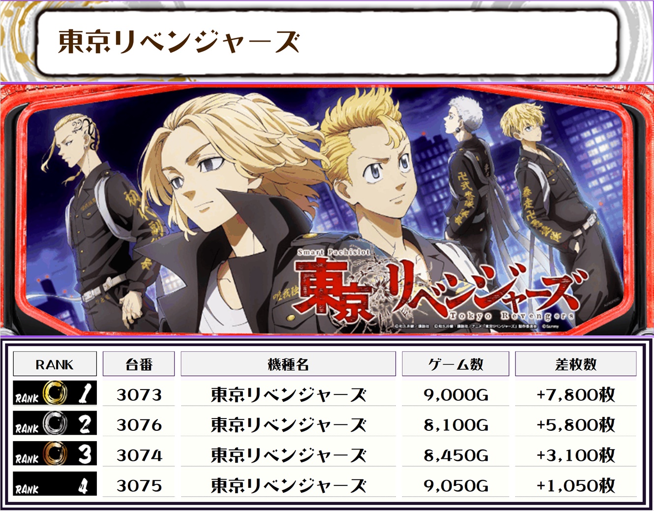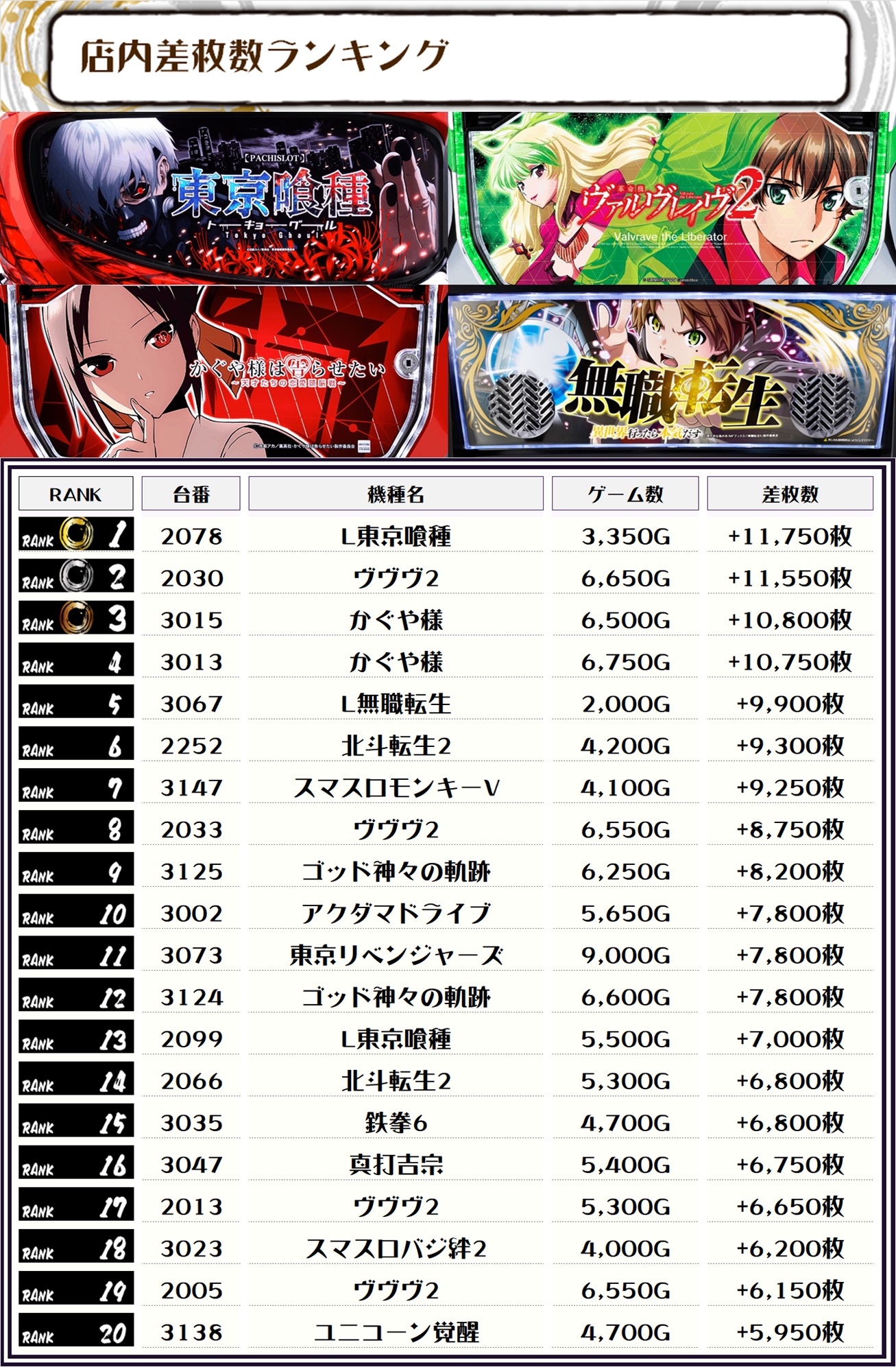 それでは、この日の【機種別差枚ランキング】を見ていきましょう❗️