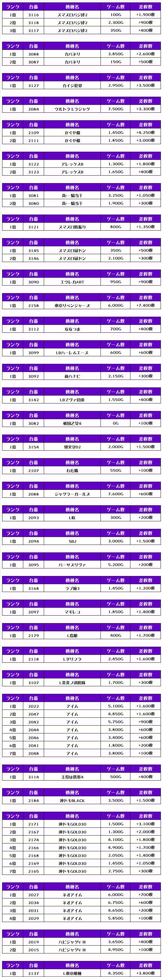 それでは、この日の【機種別差枚ランキング】を見ていきましょう❗️