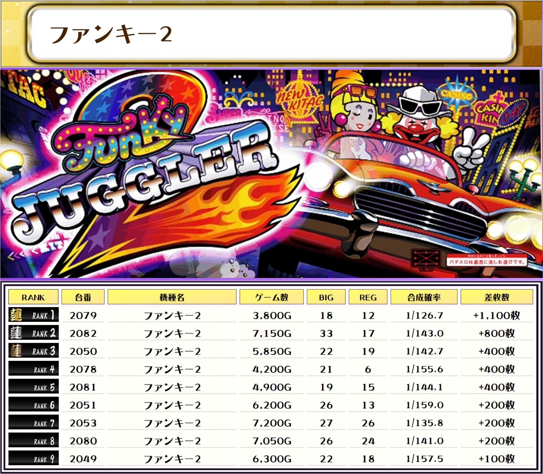 なお、ファンキー2は全台良さげな挙動を示しておりまして、機種別での勝率は驚異の90%でした‼
