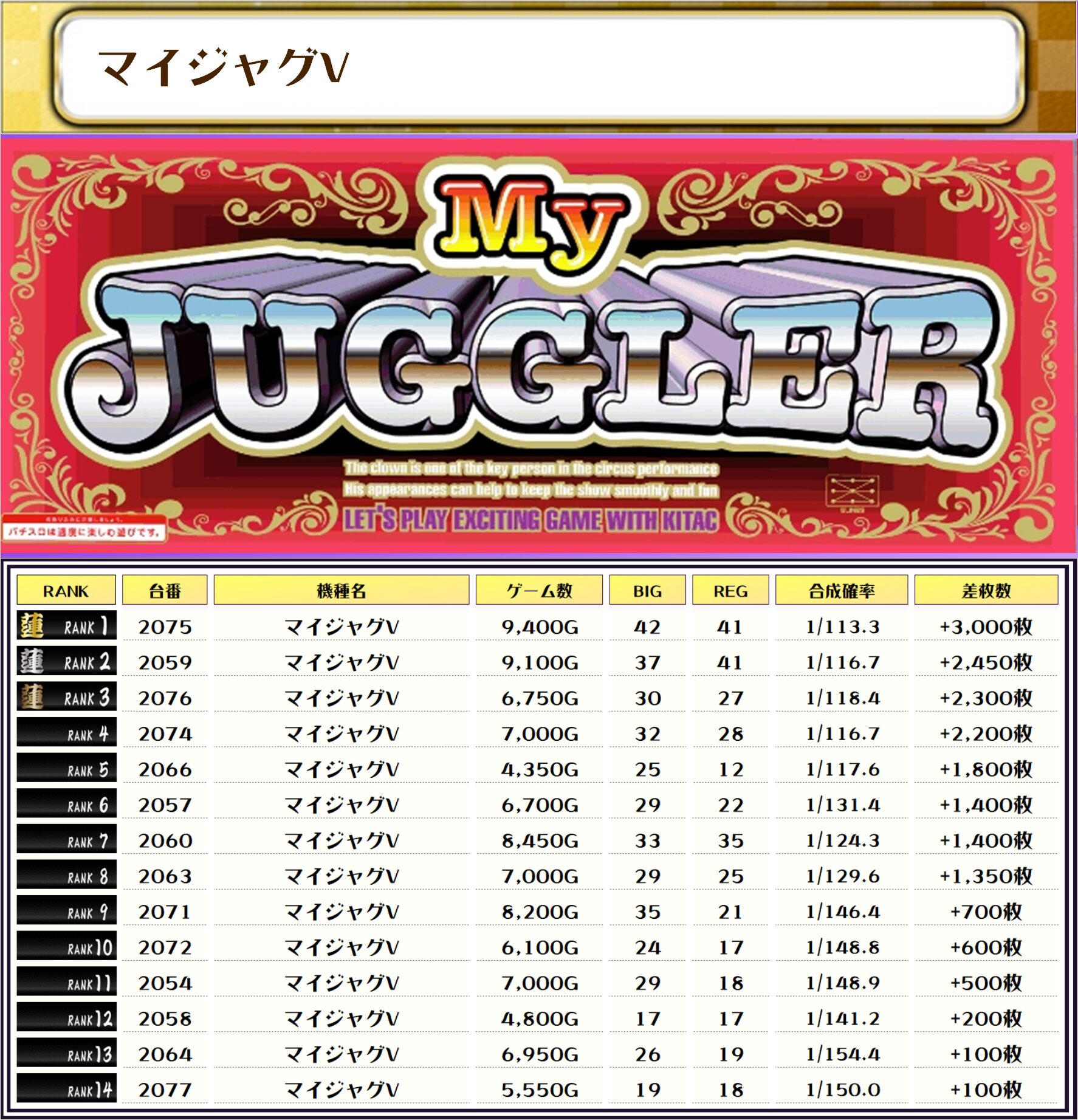 そして、全体の差枚ランキングです🌟