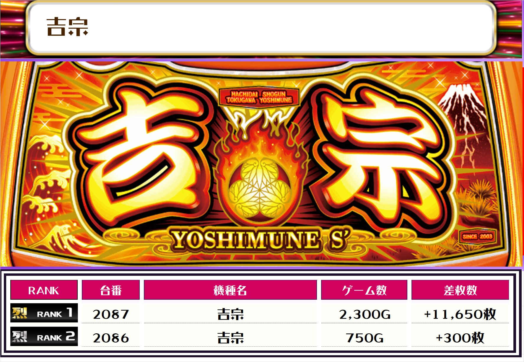 この日、全体の差枚トップに輝いたのは【吉宗・2087番台】の+11,650枚‼️