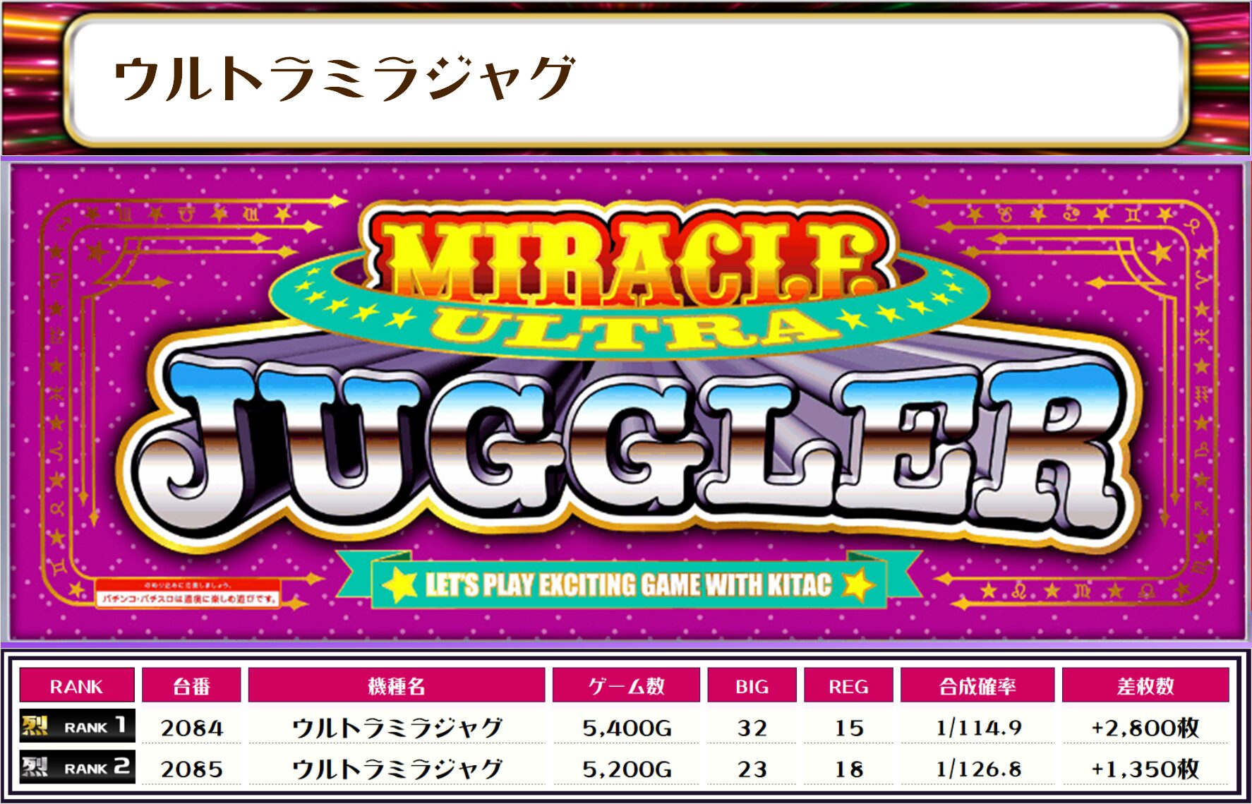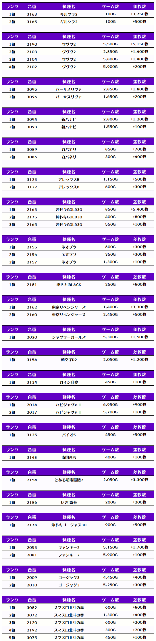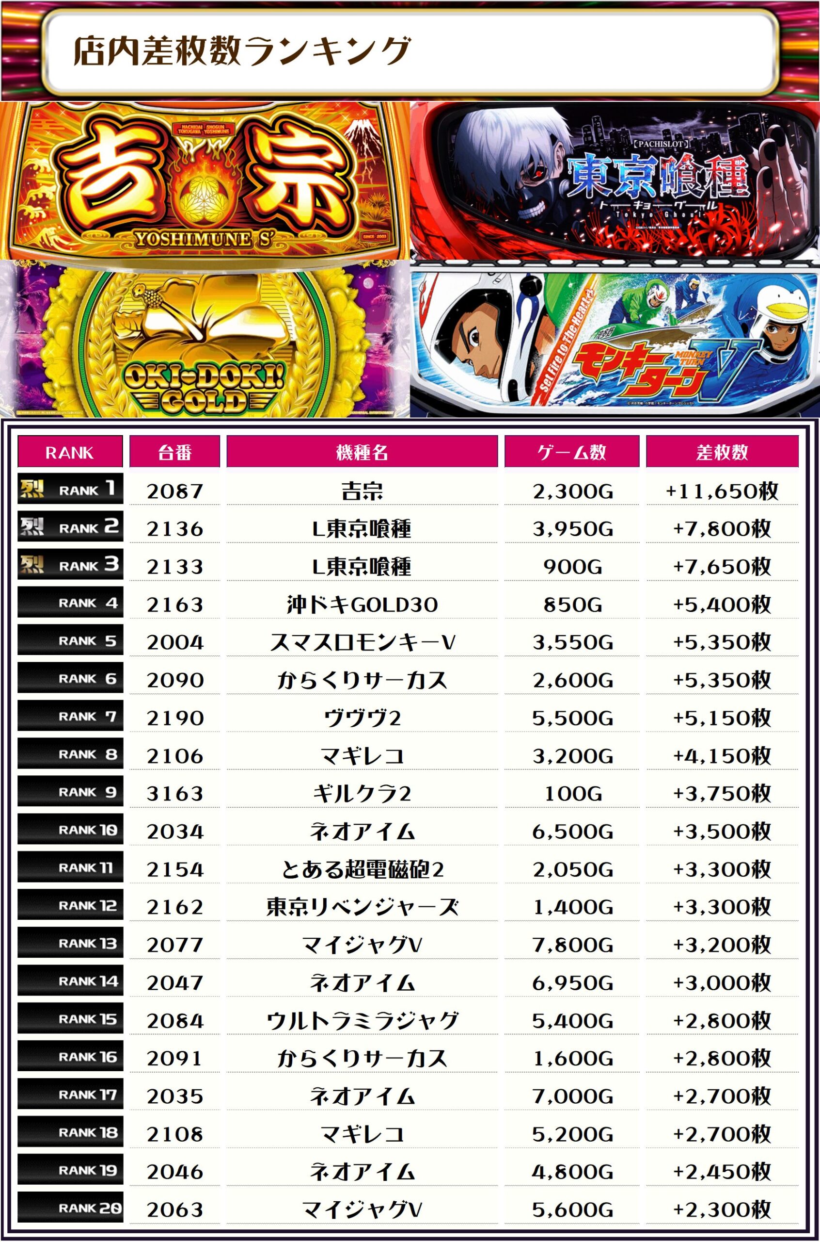 それでは、この日の【機種別差枚ランキング】を見ていきましょう❗️
