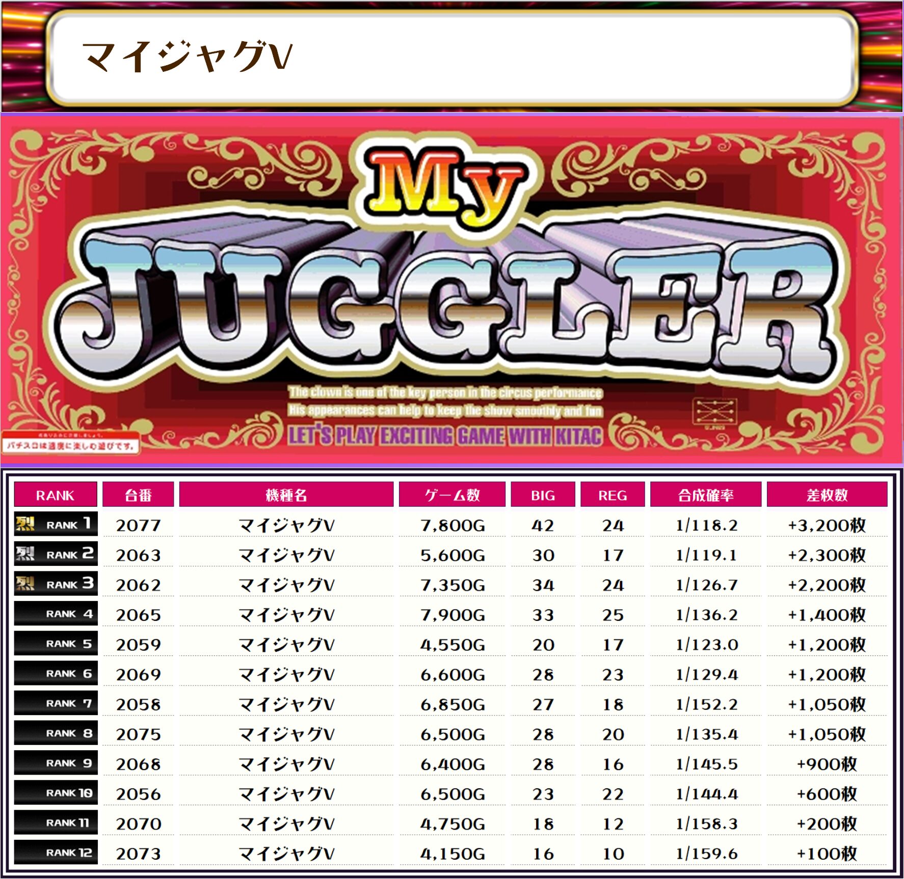 そして、全体の差枚ランキングです🌟