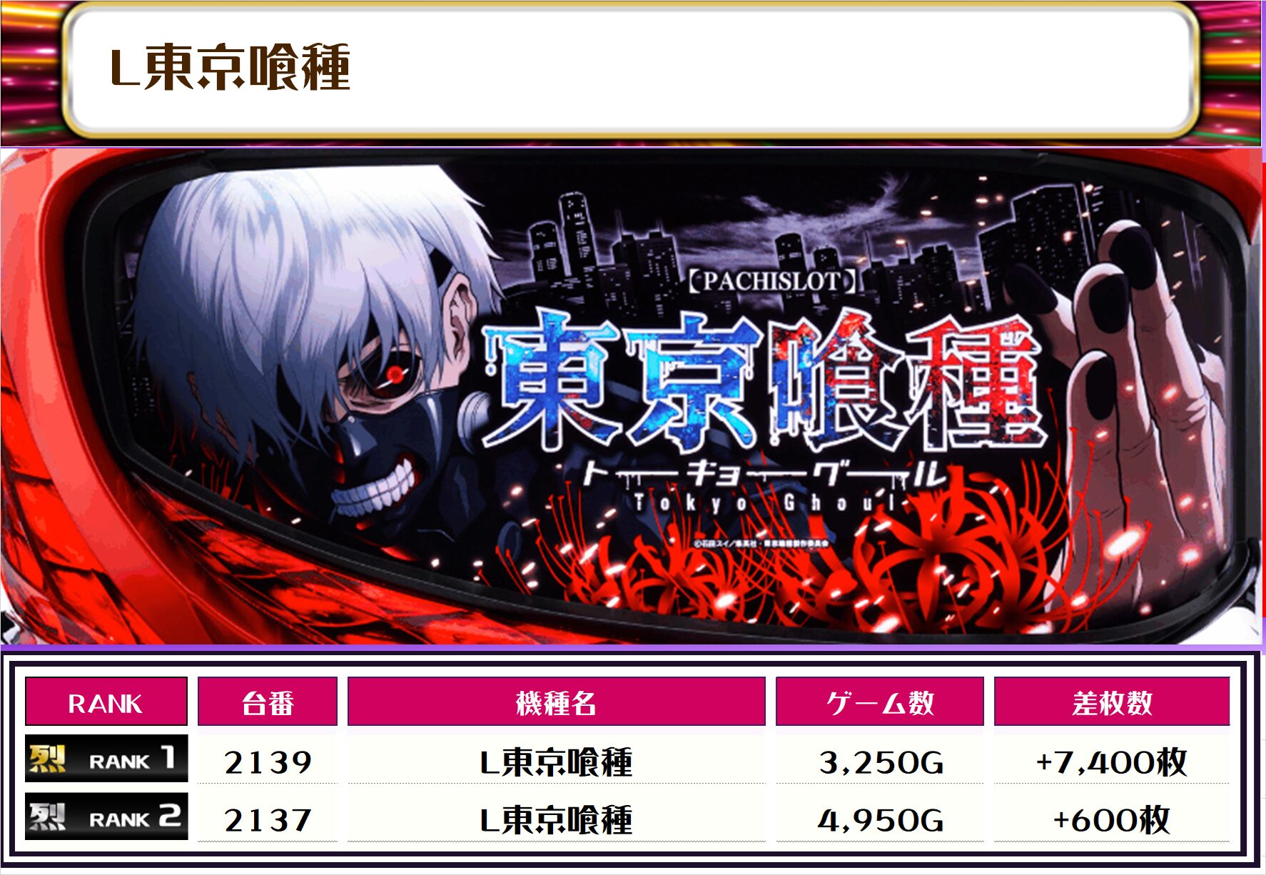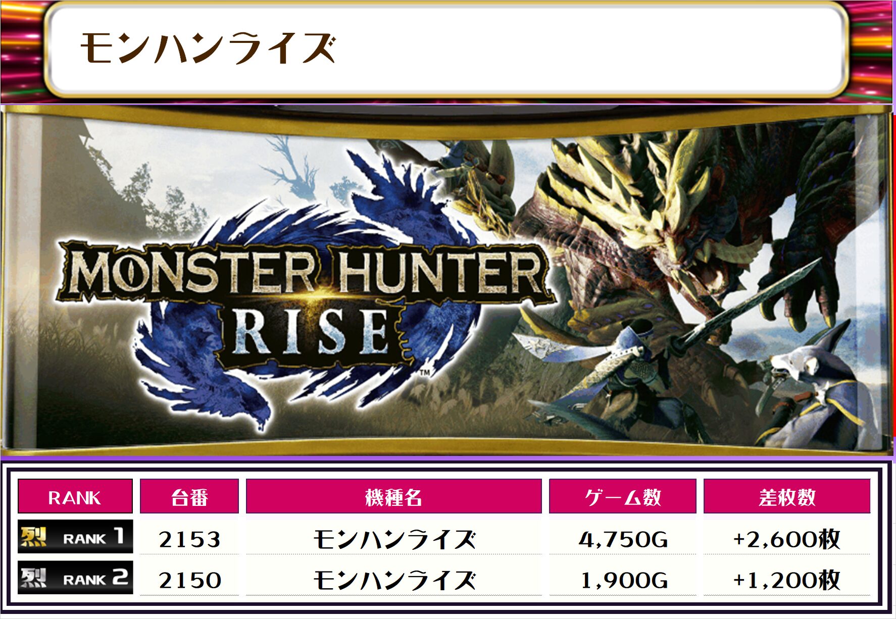 それでは、この日の【機種別差枚ランキング】を見ていきましょう❗️