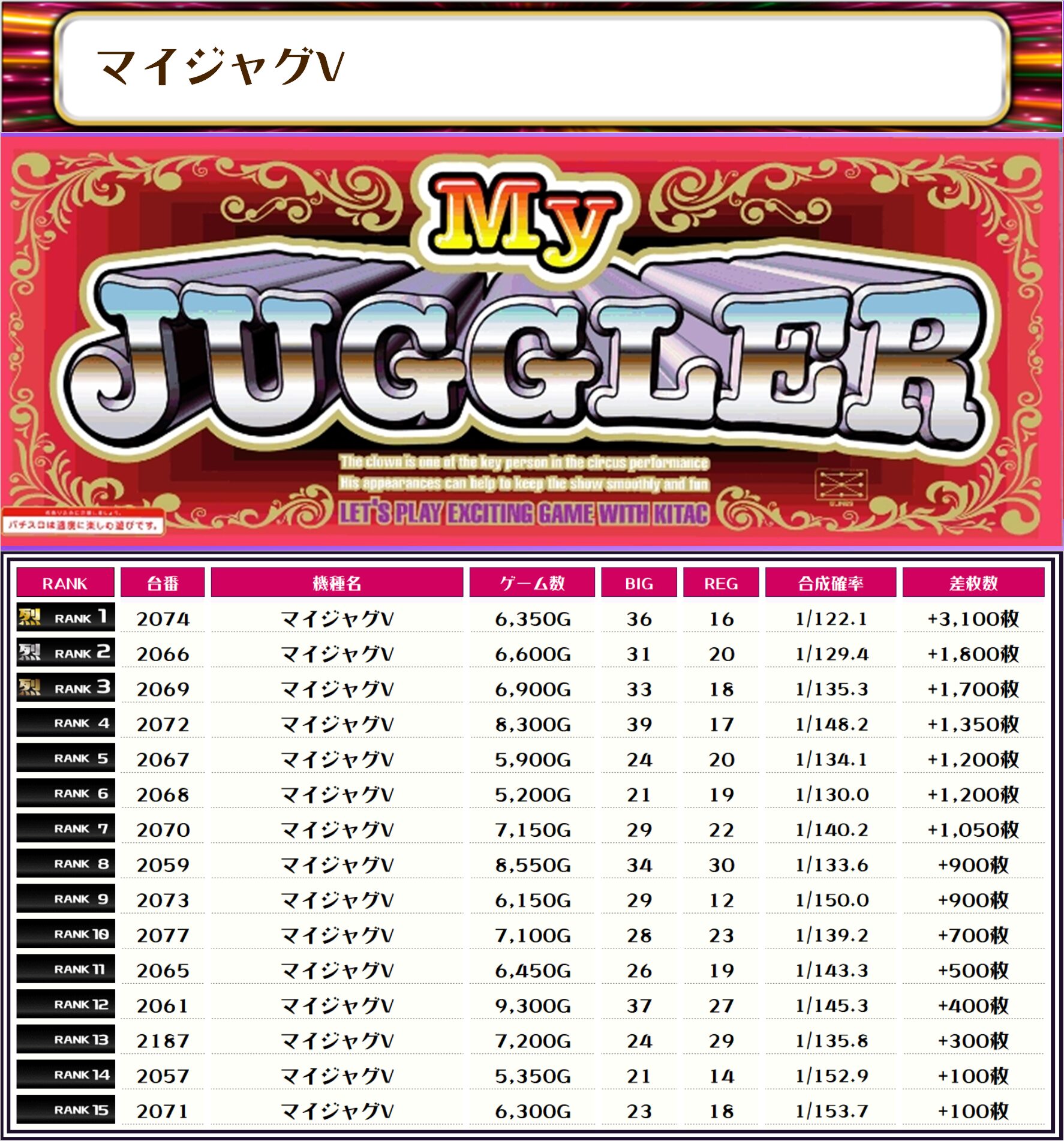 そして、全体の差枚ランキングです🌟