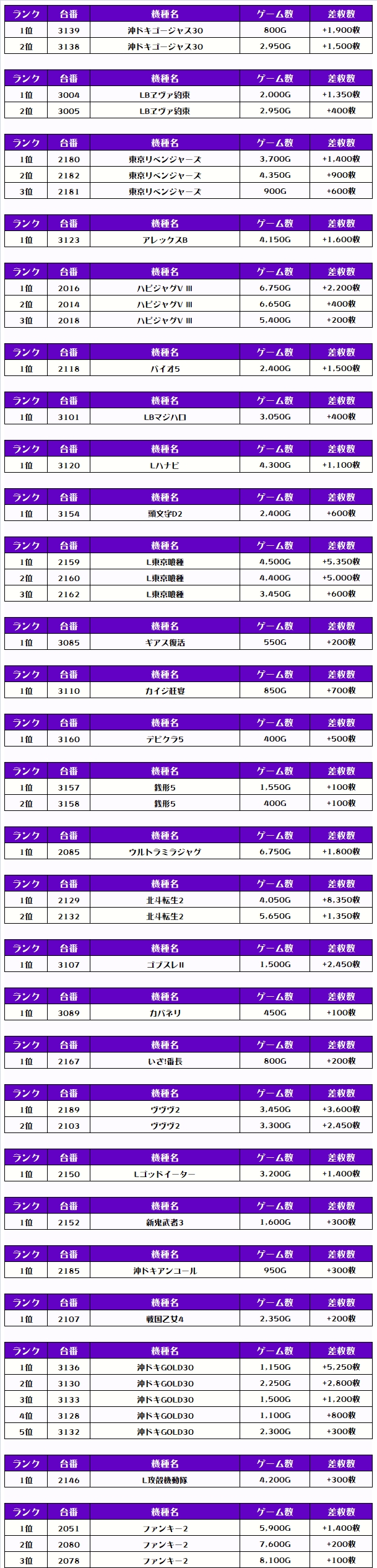 それでは、この日の【機種別差枚ランキング】を見ていきましょう❗️