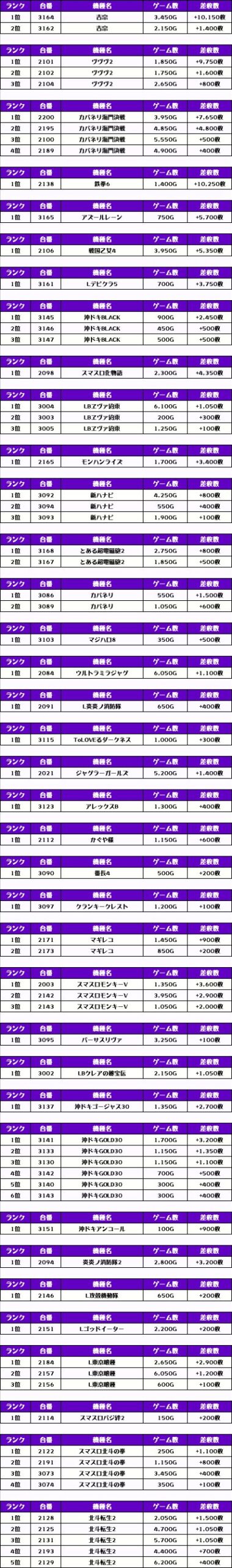 それでは、この日の【機種別差枚ランキング】を見ていきましょう❗️