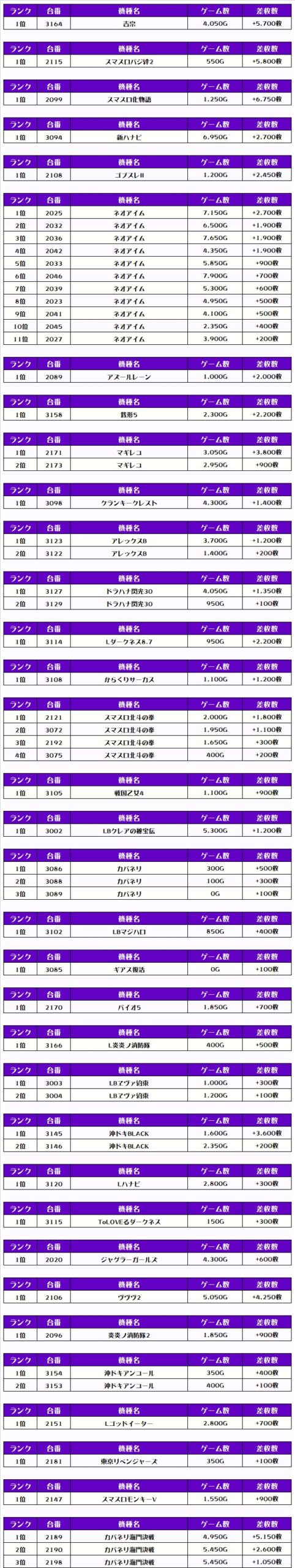 それでは、この日の【機種別差枚ランキング】を見ていきましょう❗️
