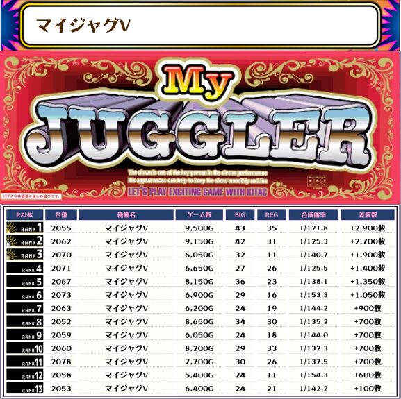 マイジャグV・ネオアイムは設置の半分ぐらいがプラス差枚‼️ 機種平均もプラスになっており、かなり優秀だったようです✨