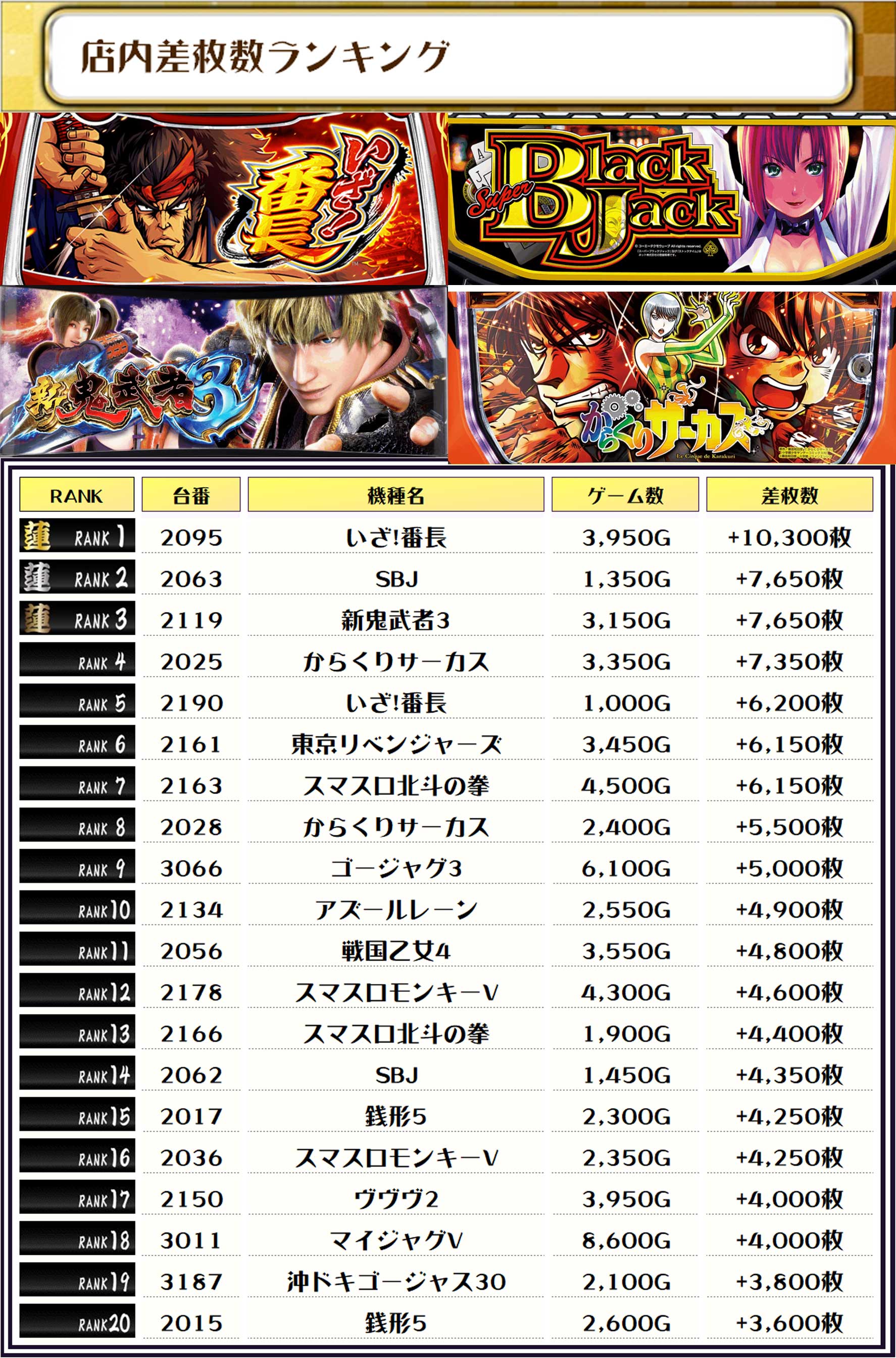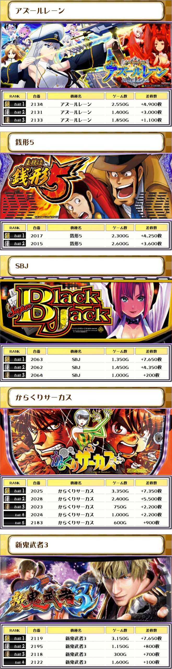 2位には【SBJ・2063番台】の+7,650枚、そして3位には同率で【新鬼武者3・2119番台】の+7,650枚がランクインっ🏆🏆🏆🏆