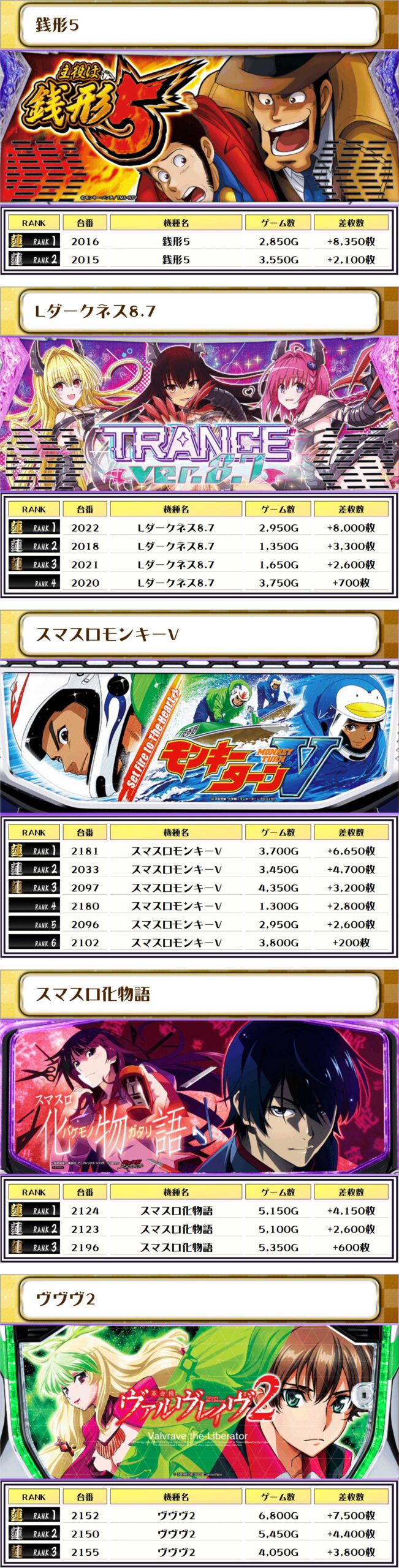 それでは、この日の【機種別差枚ランキング】を見ていきましょう❗️