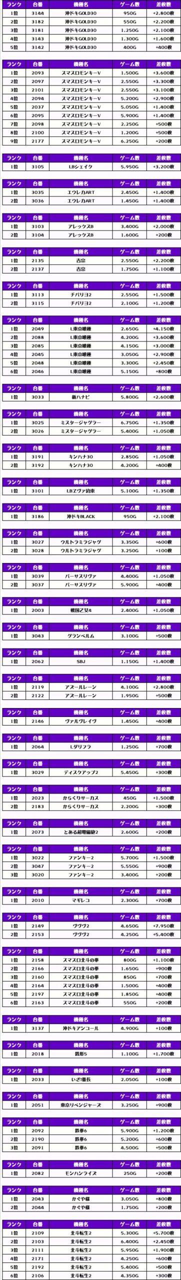 それでは、この日の【機種別差枚ランキング】を見ていきましょう❗️