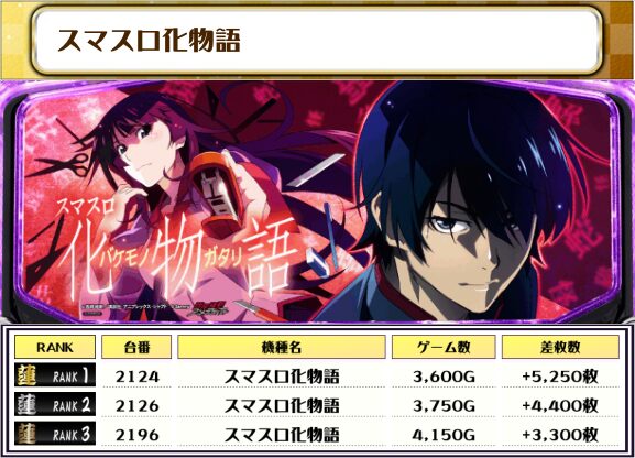 今回、ピックアップした機種は稼働の良くて優秀台があった機種になります!! 化物語、新鬼武者3、ダークネス8.7なんかは目立っていたね👀