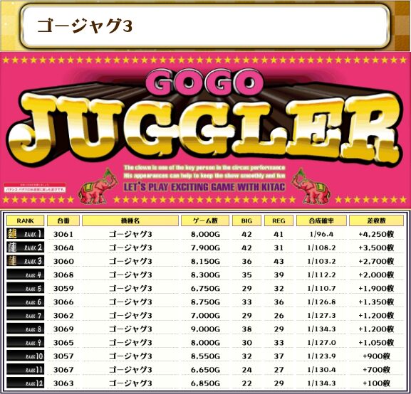 今回、ピックアップした機種は稼働の良くて優秀台があった機種になります!!