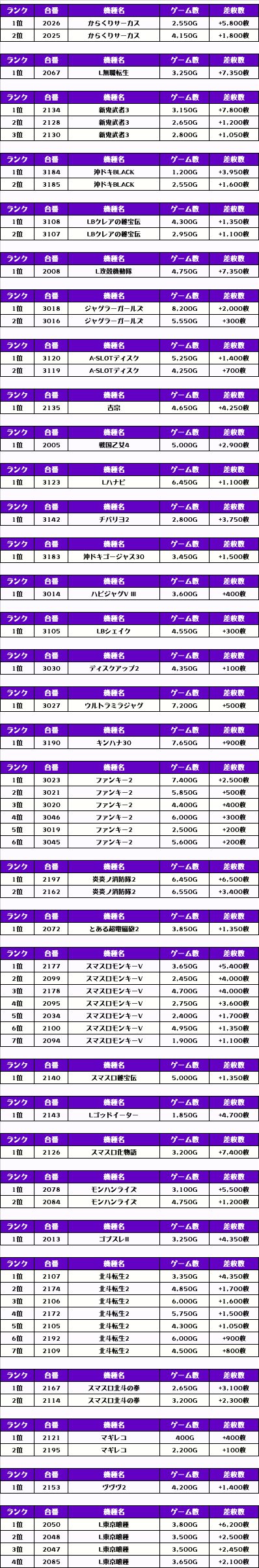 それでは、この日の【機種別差枚ランキング】を見ていきましょう❗️