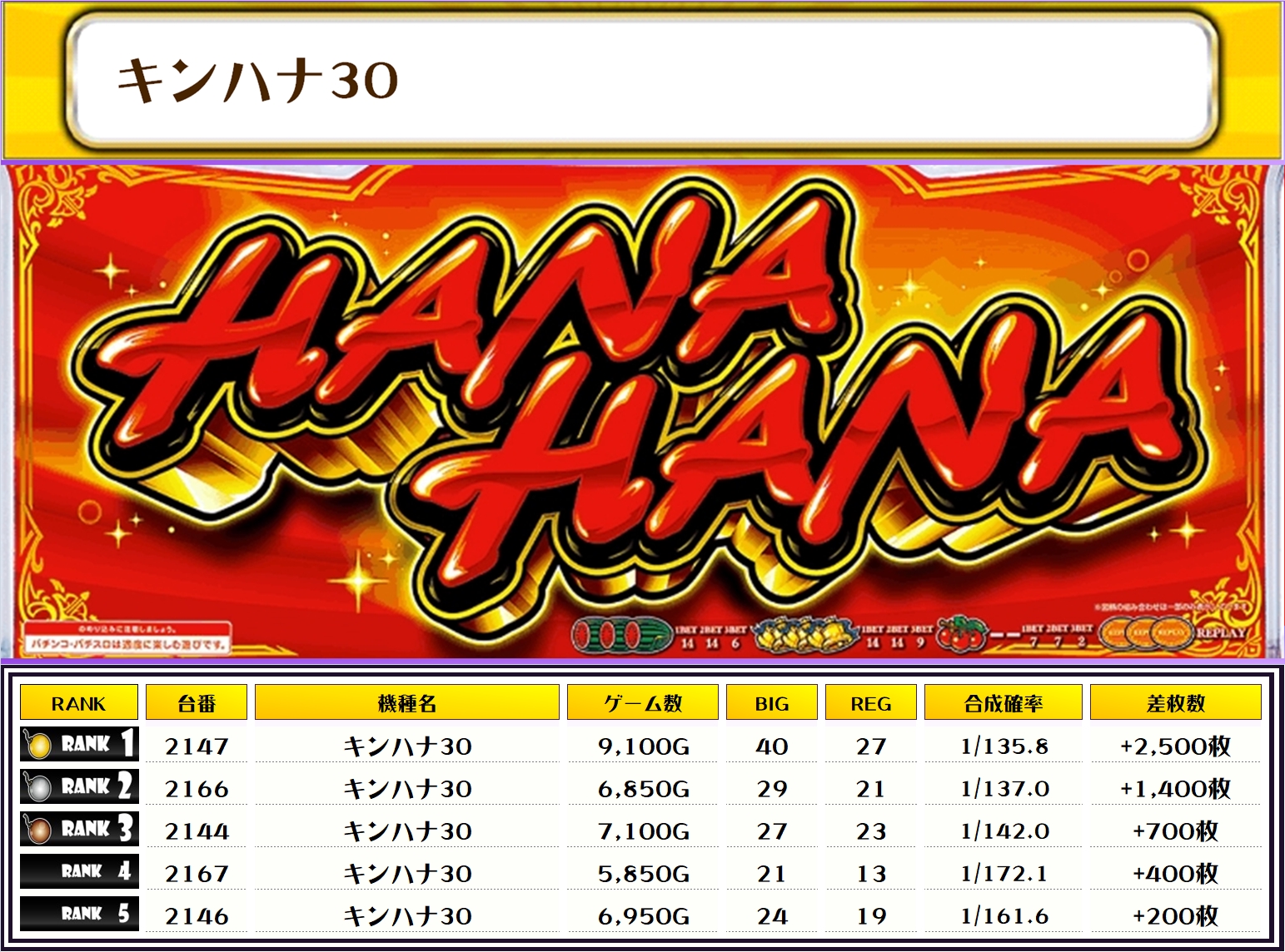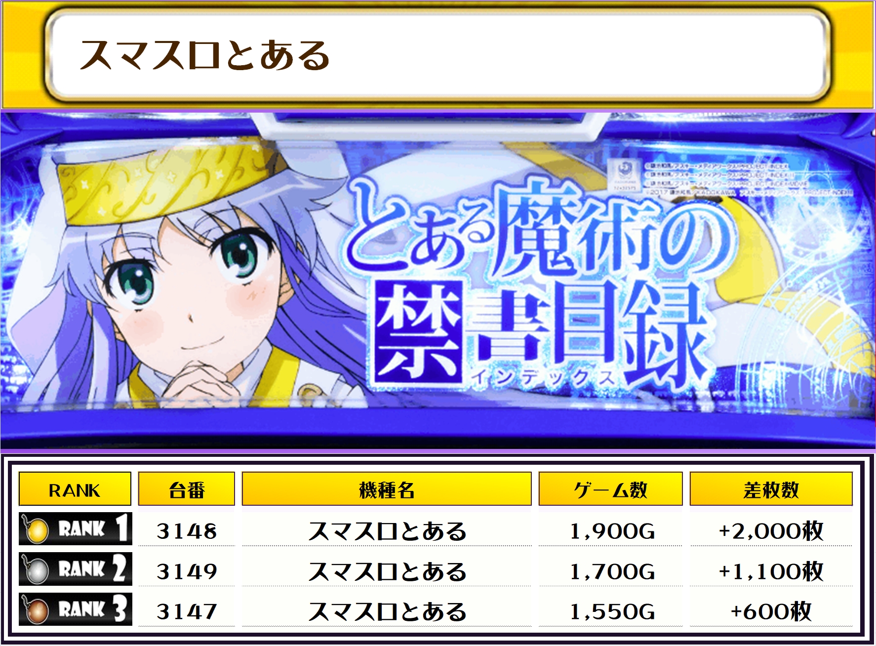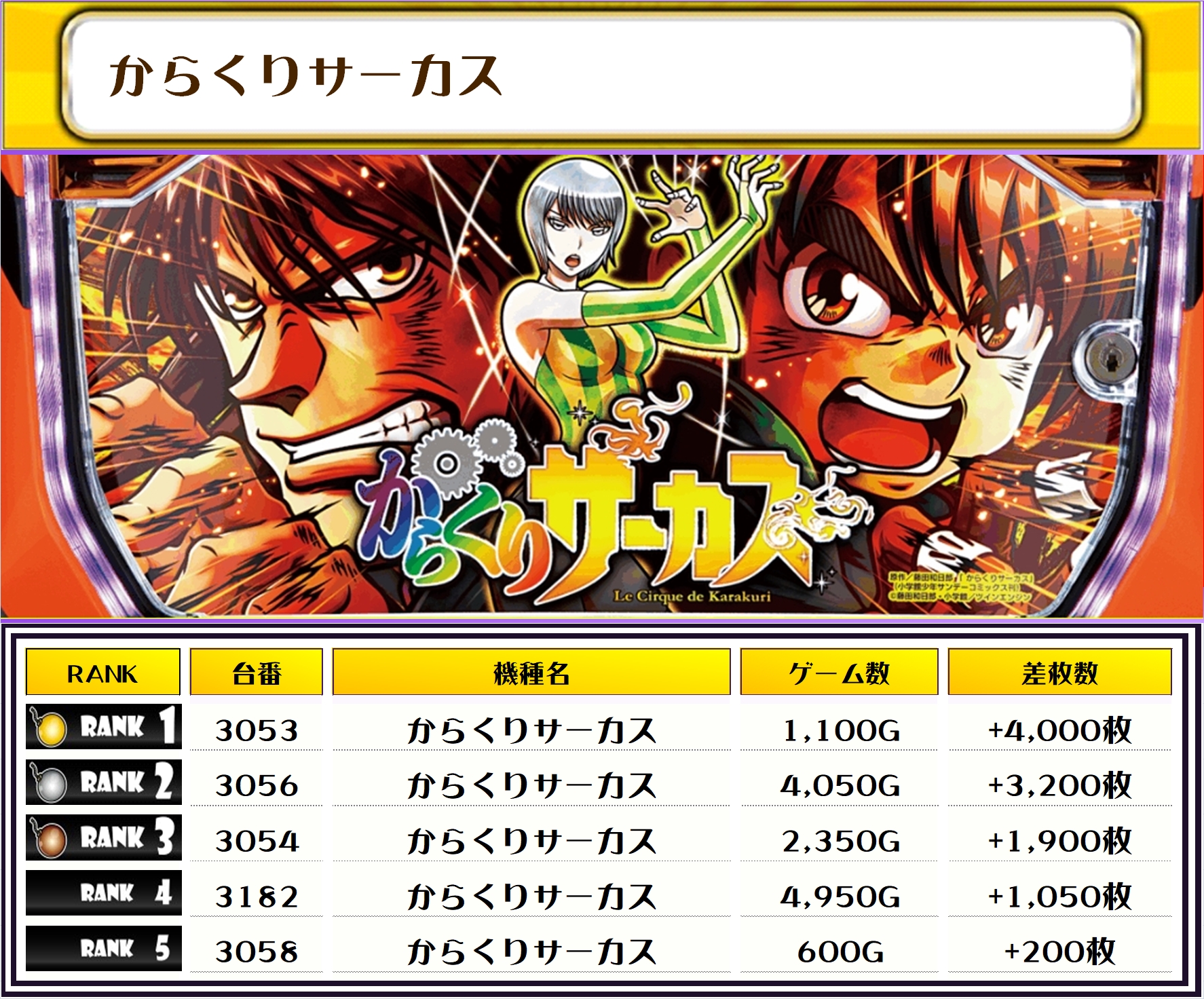 それでは、この日の店内差枚ランキングを見ていただきましょう❗️