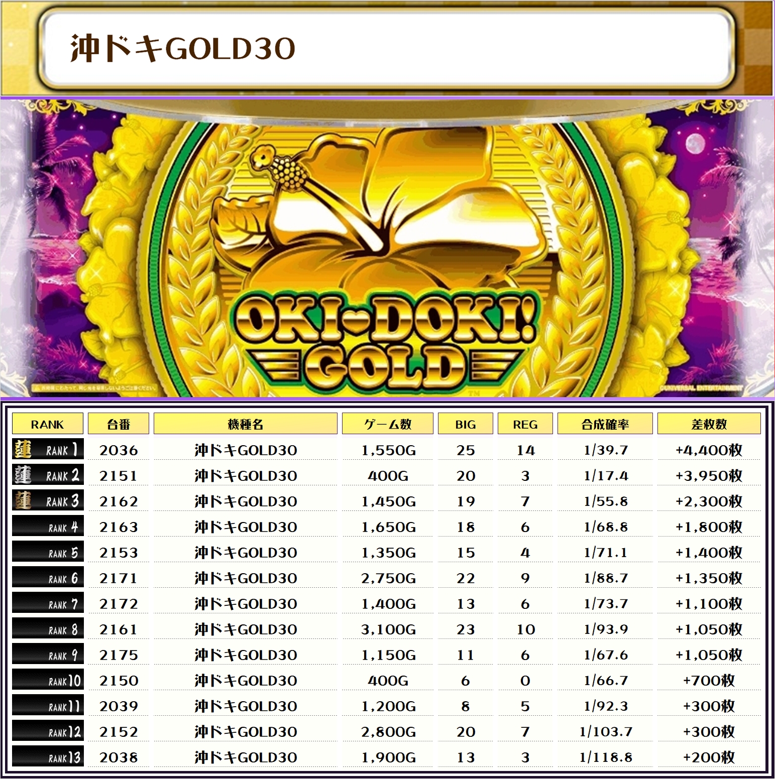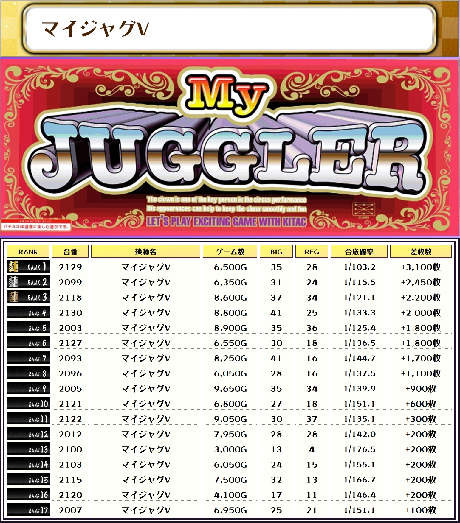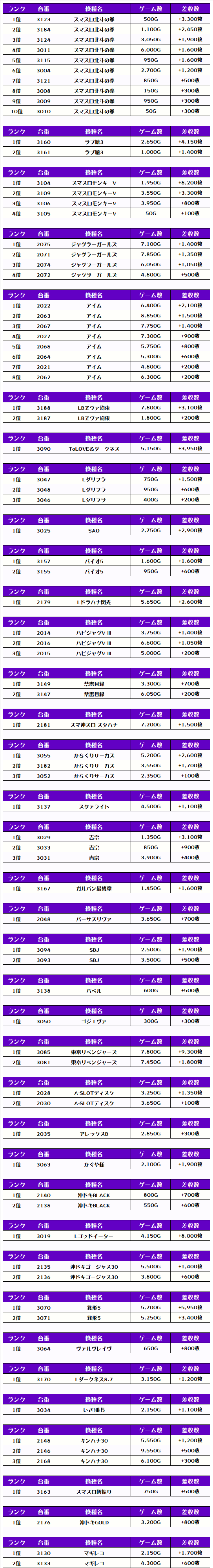それでは、この日の店内差枚ランキングを見ていただきましょう❗️