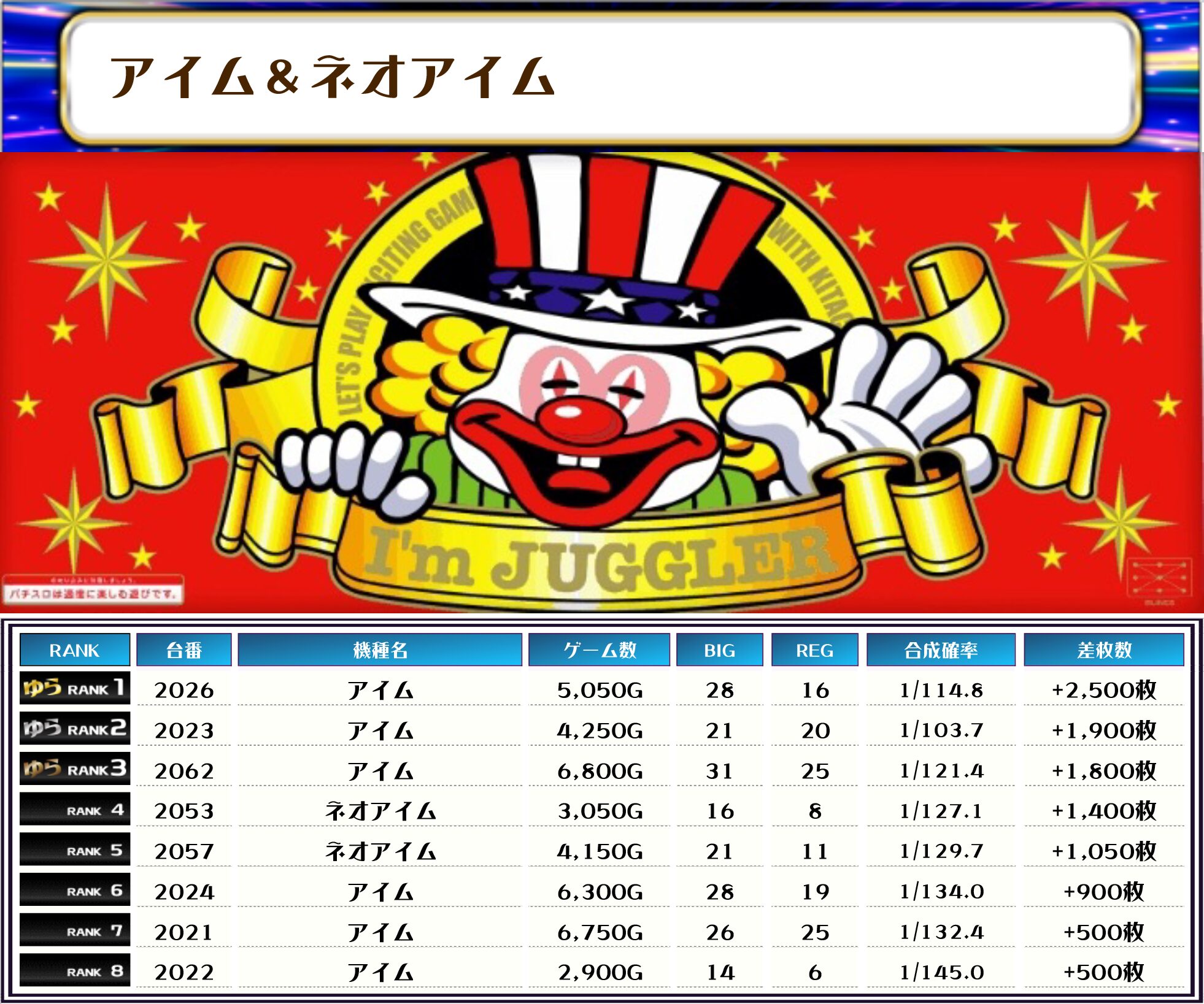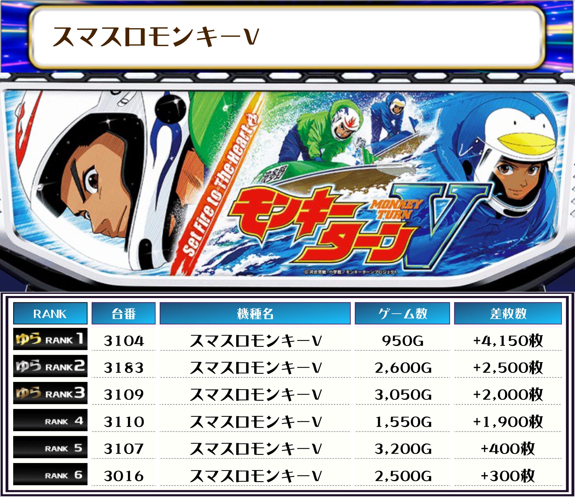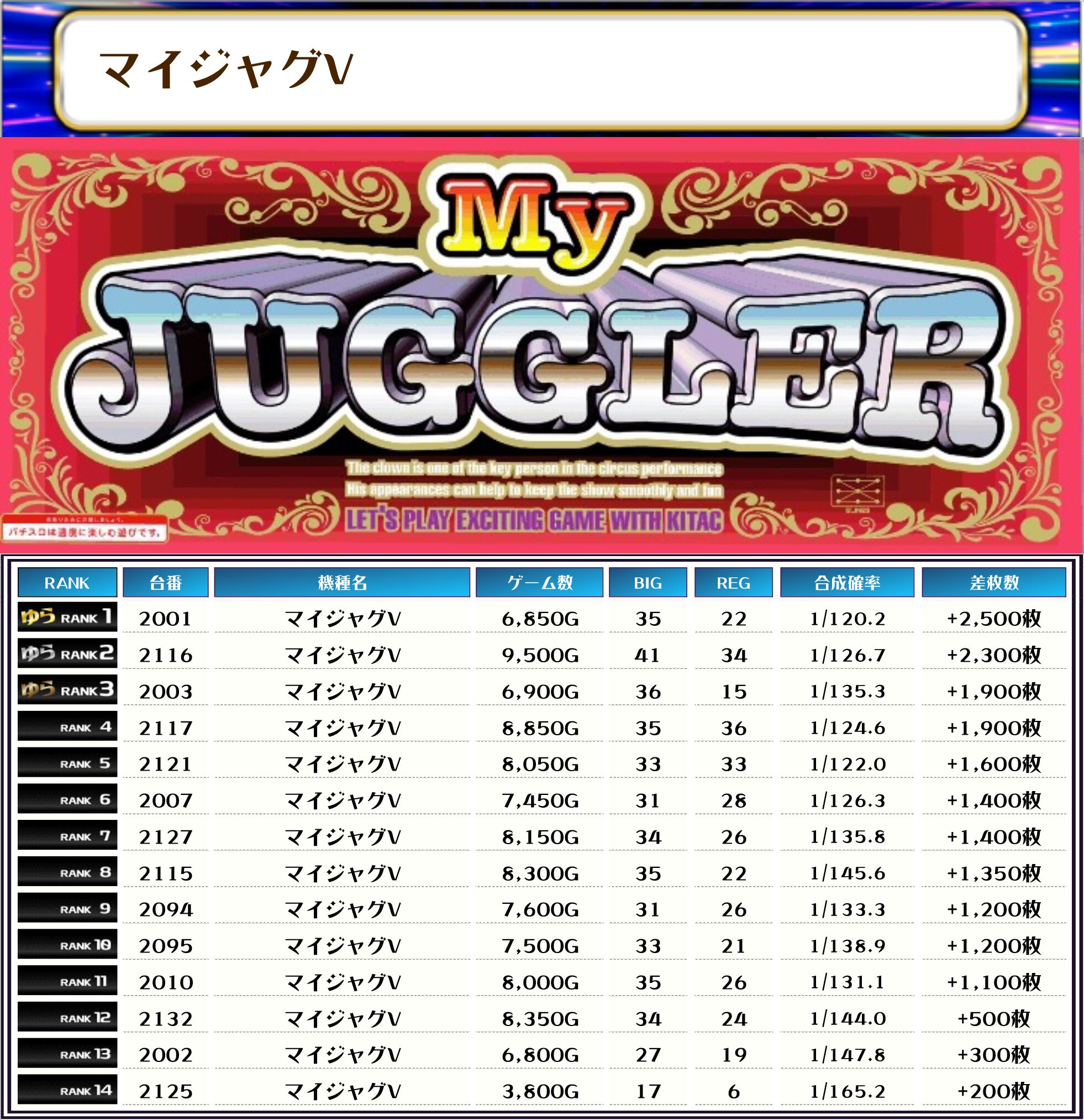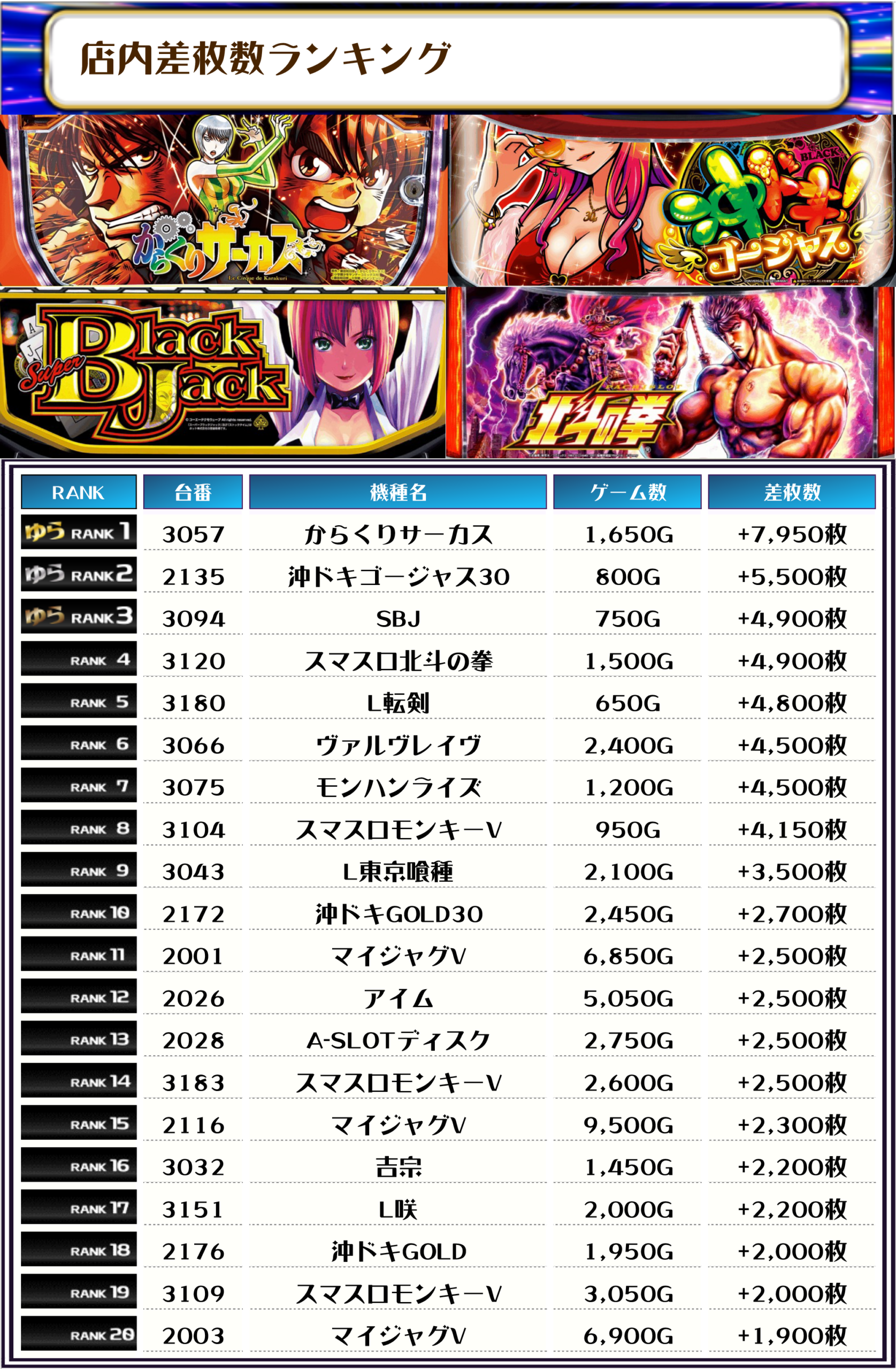 それでは、この日の店内差枚ランキングを見ていただきましょう❗️
