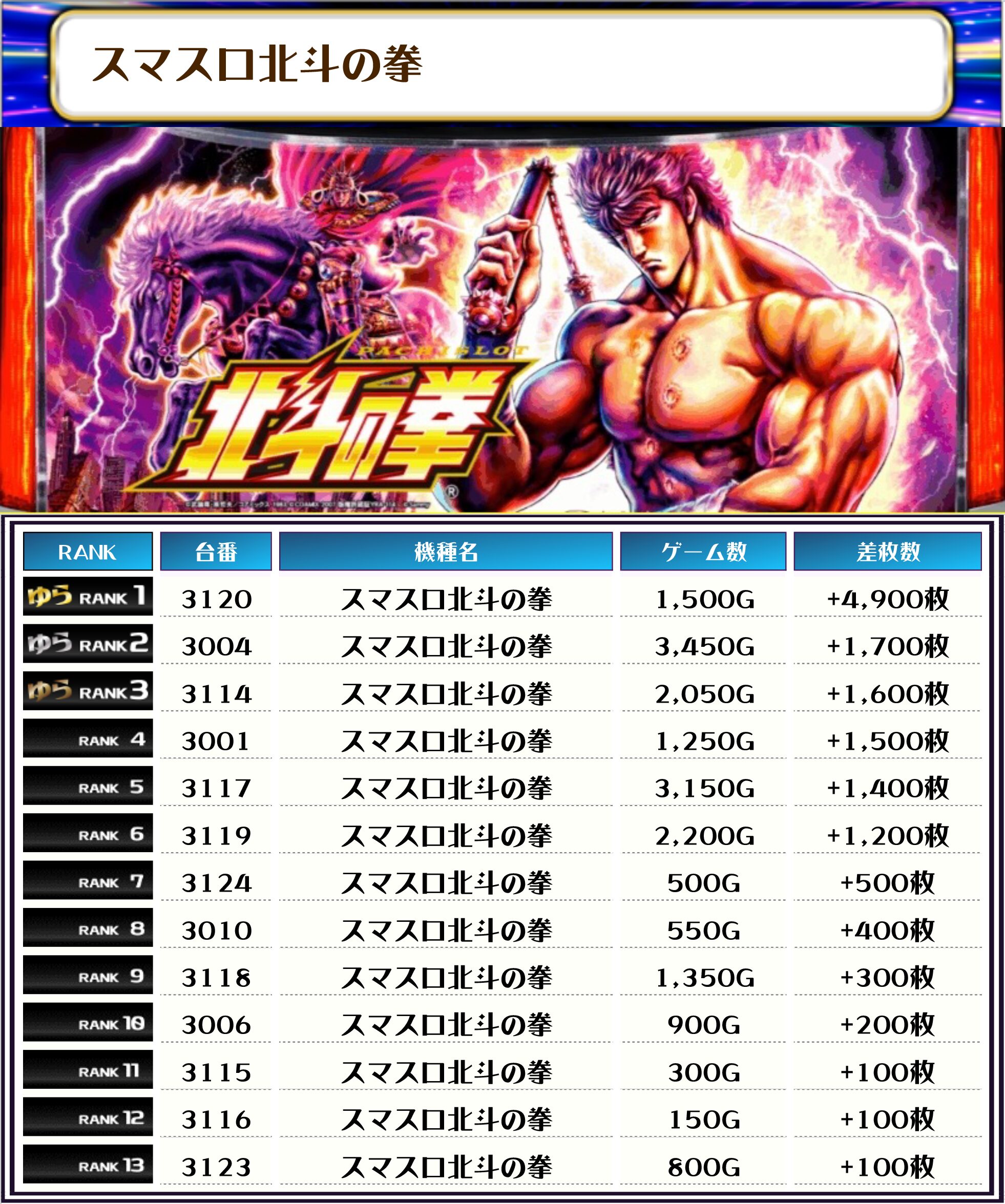 スマスロ北斗の拳は半数が差枚プラスでした👏