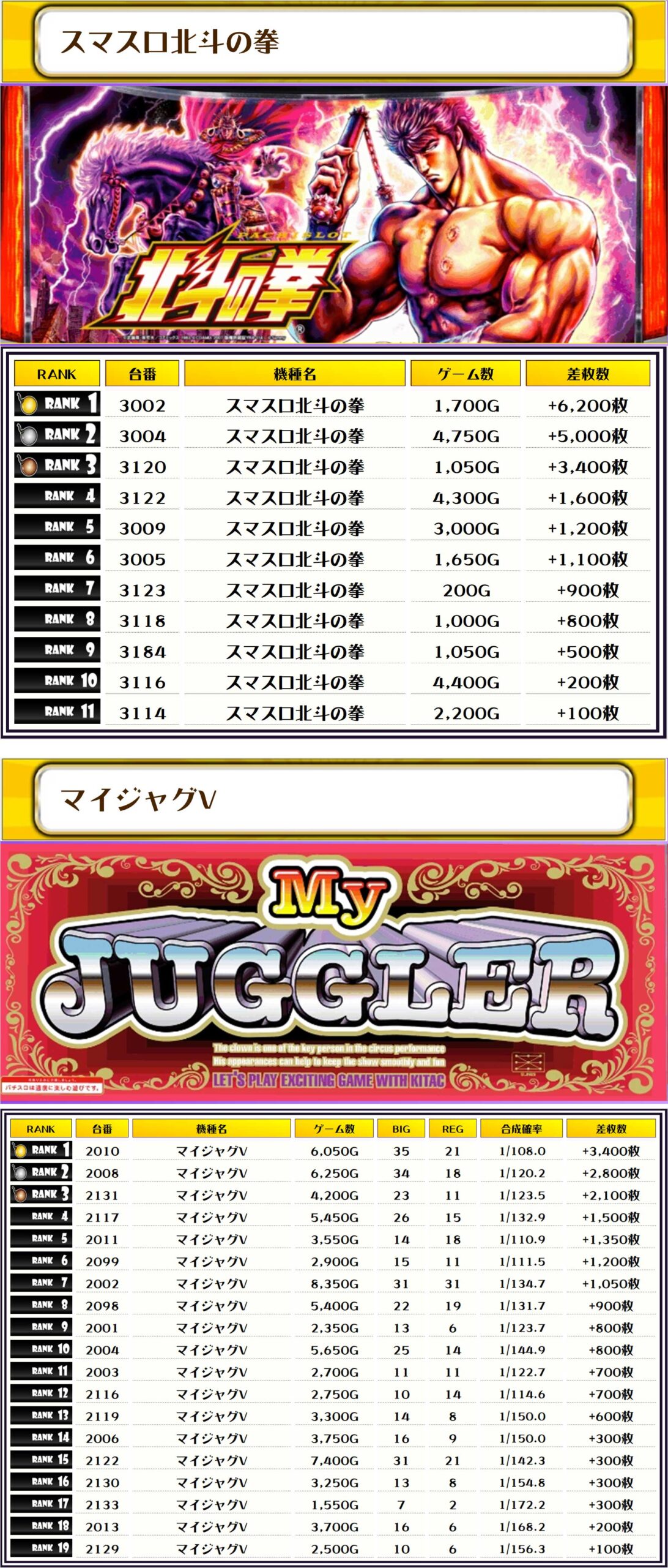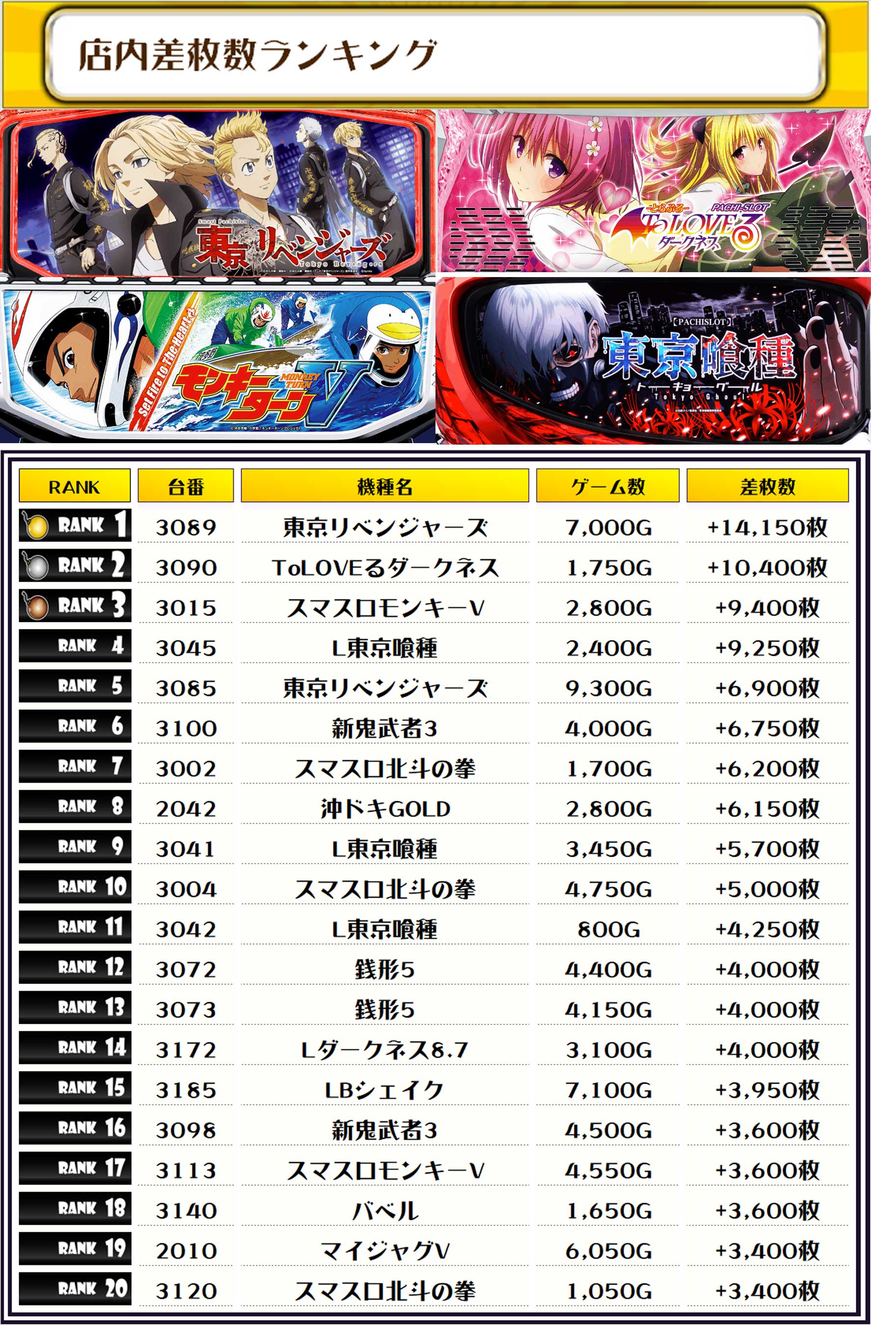 それでは、この日の店内差枚ランキングを見ていただきましょう❗️