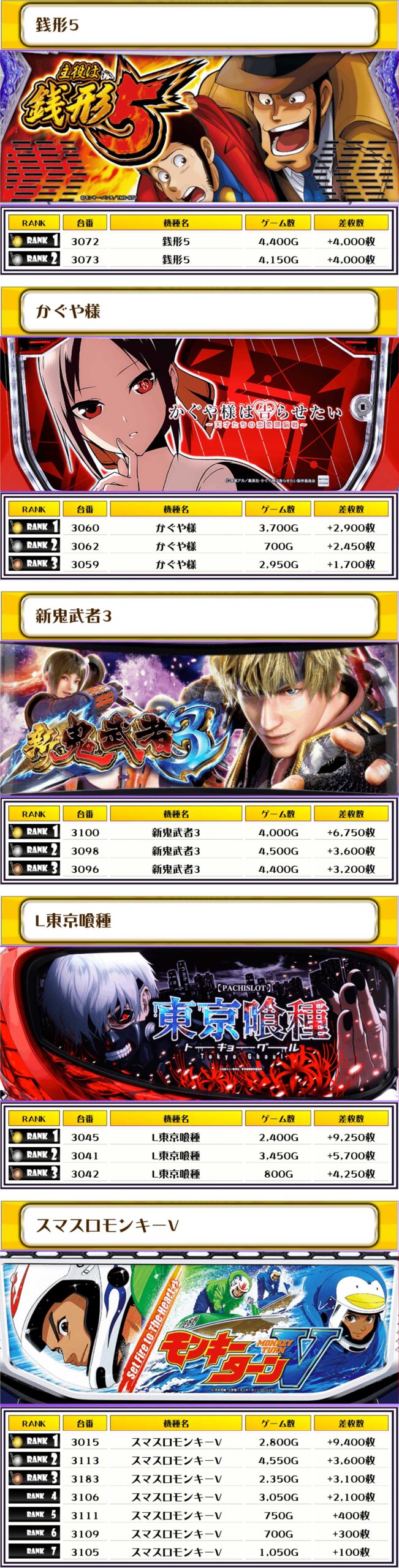 恐らく銭形5・かぐや様は稼働的に間違いなさそうだ💡