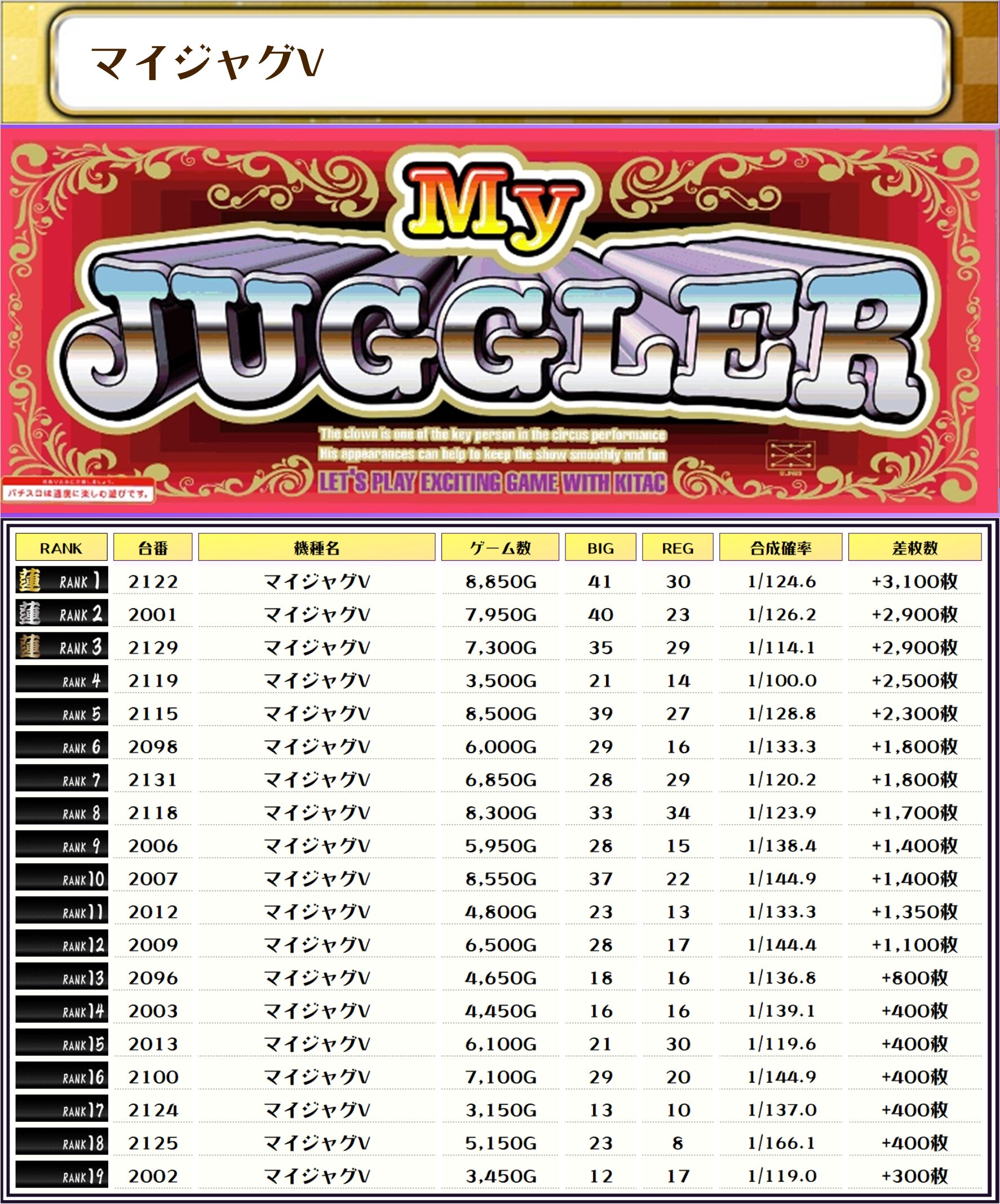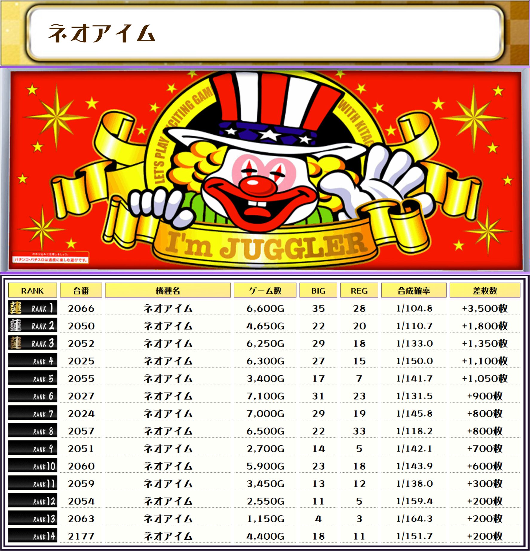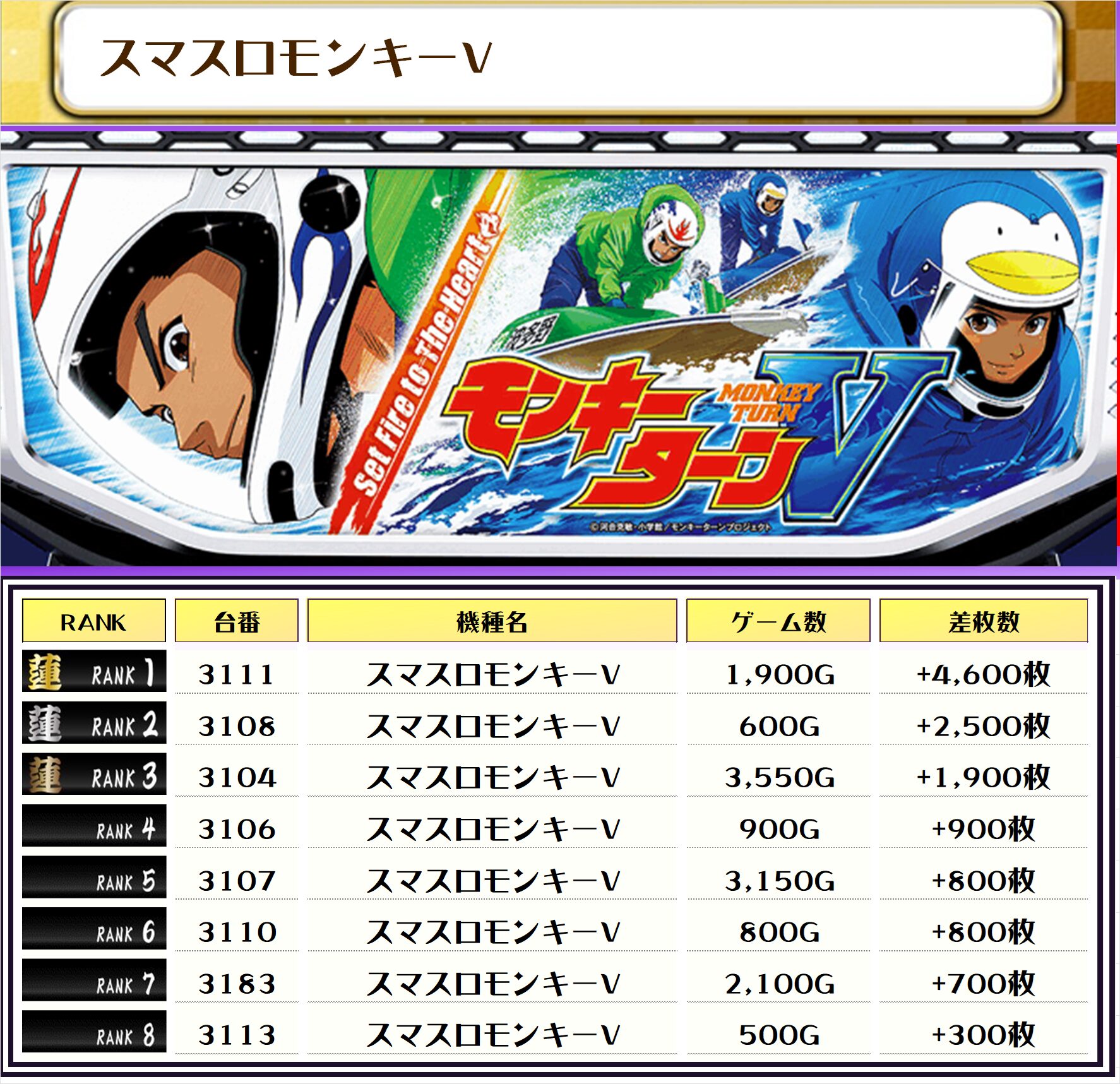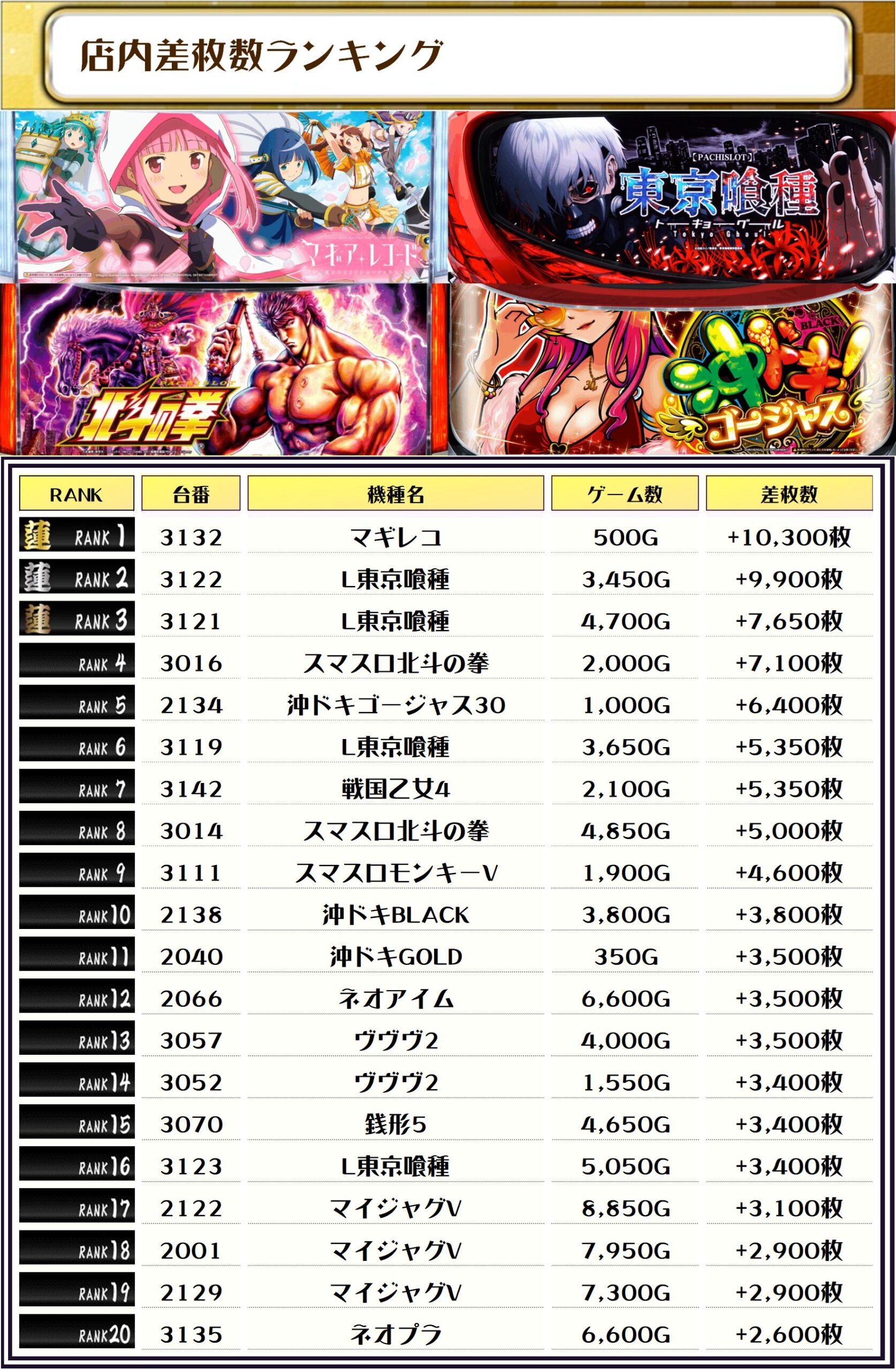 それでは、この日の店内差枚ランキングを見ていただきましょう❗️