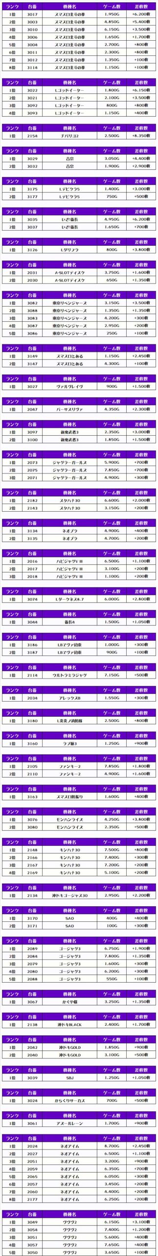 ピックアップした機種は稼働が特に目立っていた機種たちになります👍