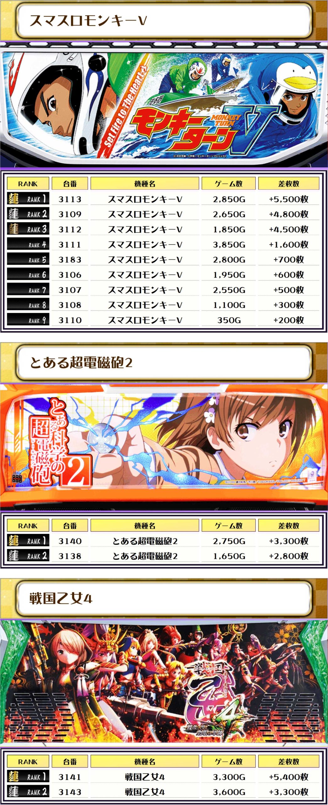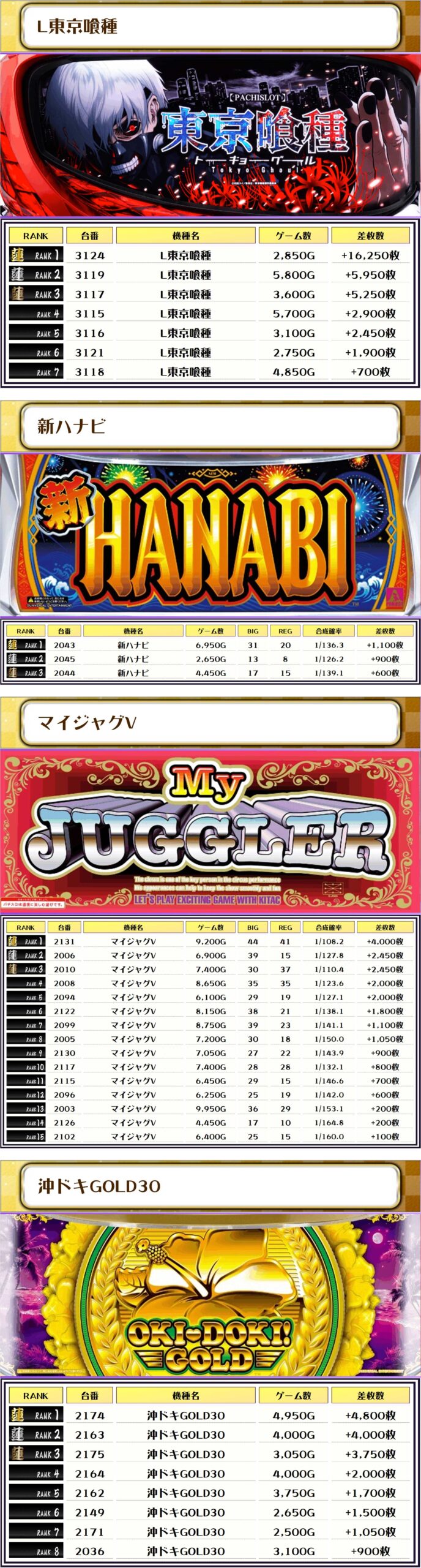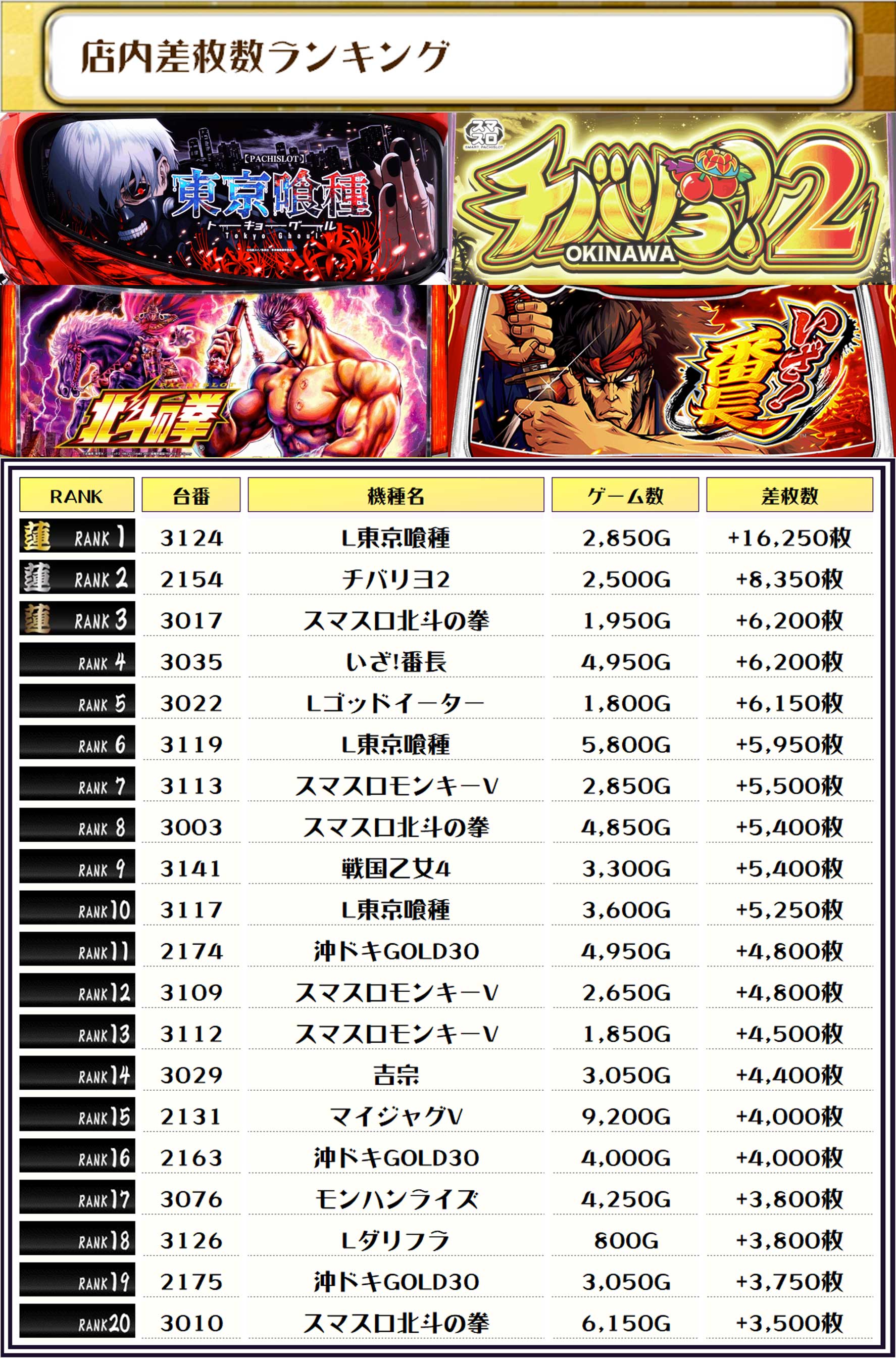 それでは、この日の店内差枚ランキングを見ていただきましょう❗️
