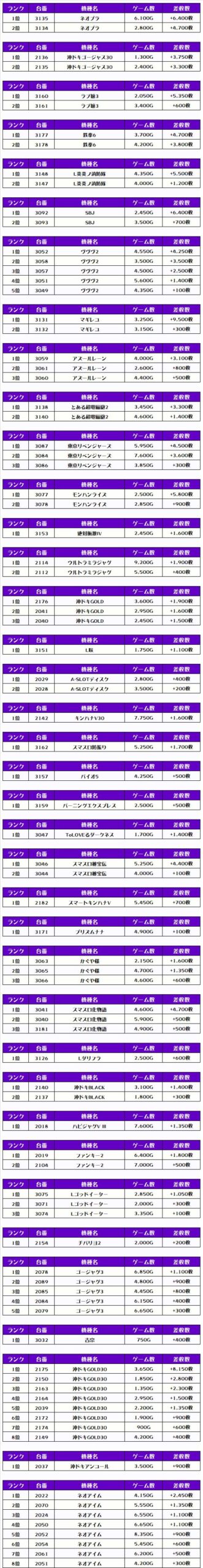 それでは、この日の店内差枚ランキングを見ていただきましょう❗️
