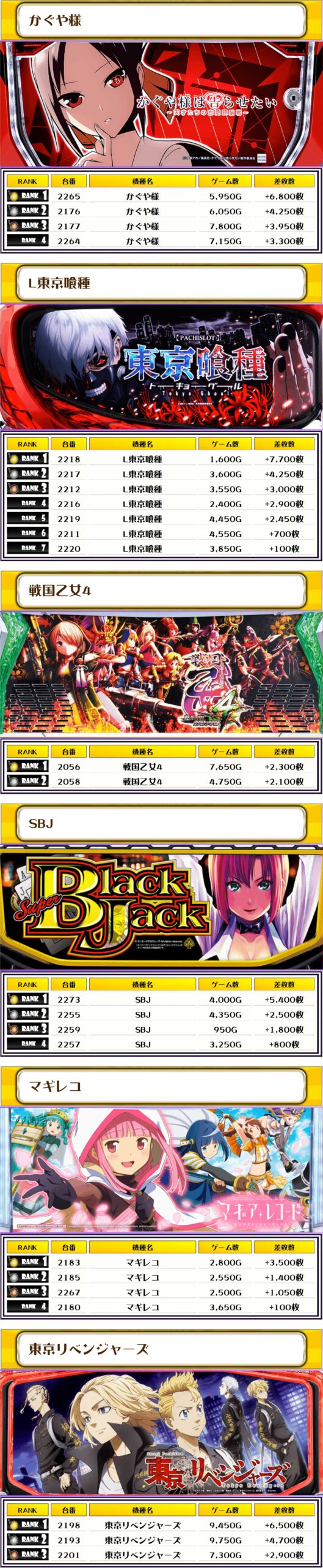 そして、戦国乙女4・SBJ・マギレコ・東京リベンジャーズは優秀台の数が多かったみたいで、打っているお客さんは本当に楽しそうだったなぁ😊