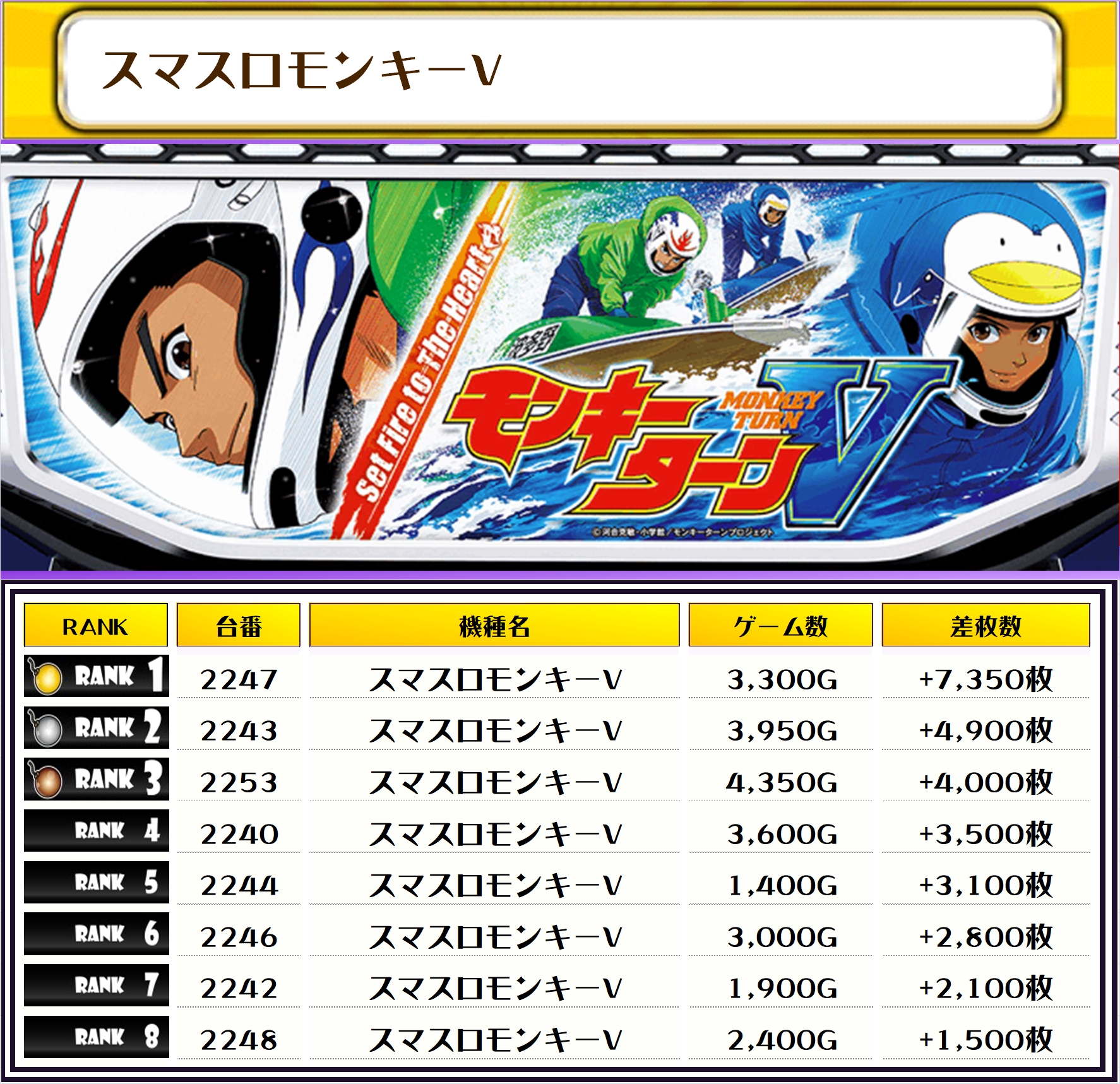 続く2位には【スマスロモンキーV・2247番台】の+7,350枚、そして3位には【Lゴッドイーター・2205番台】の+6,350枚がランクインですっ❗️