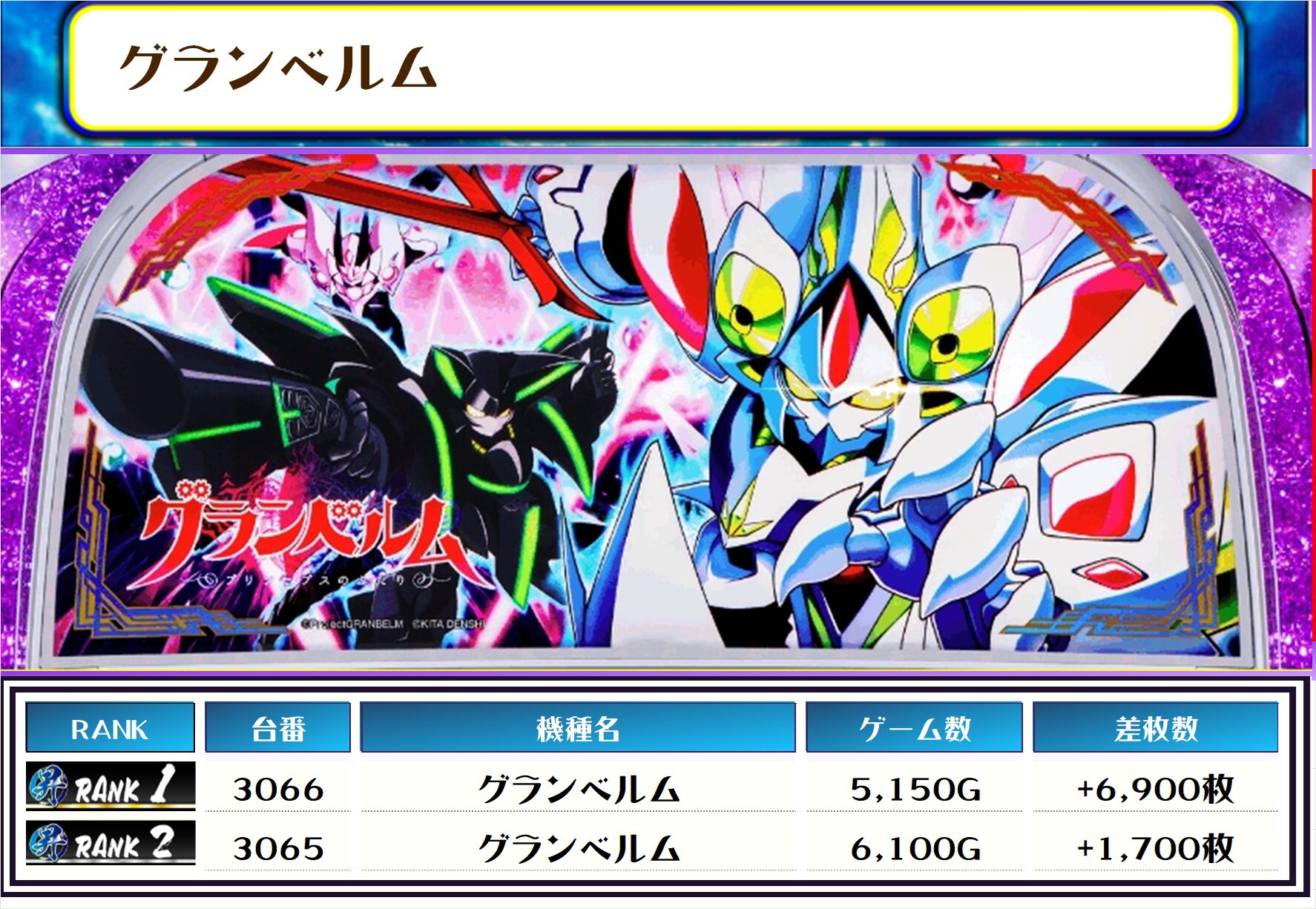 続く2位には【グランベルム・3066番台】の+6,900枚、3位は【スマスロ北斗の拳・2270番台】の+6,150枚がランクインですっ❗️