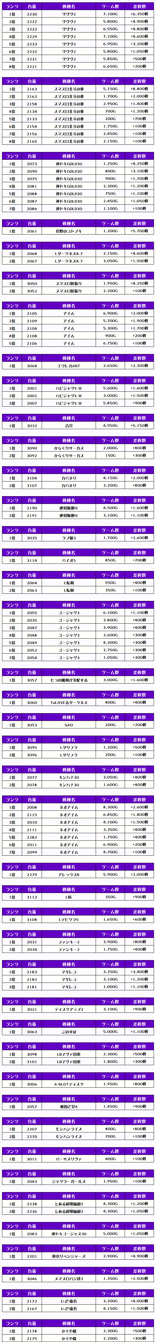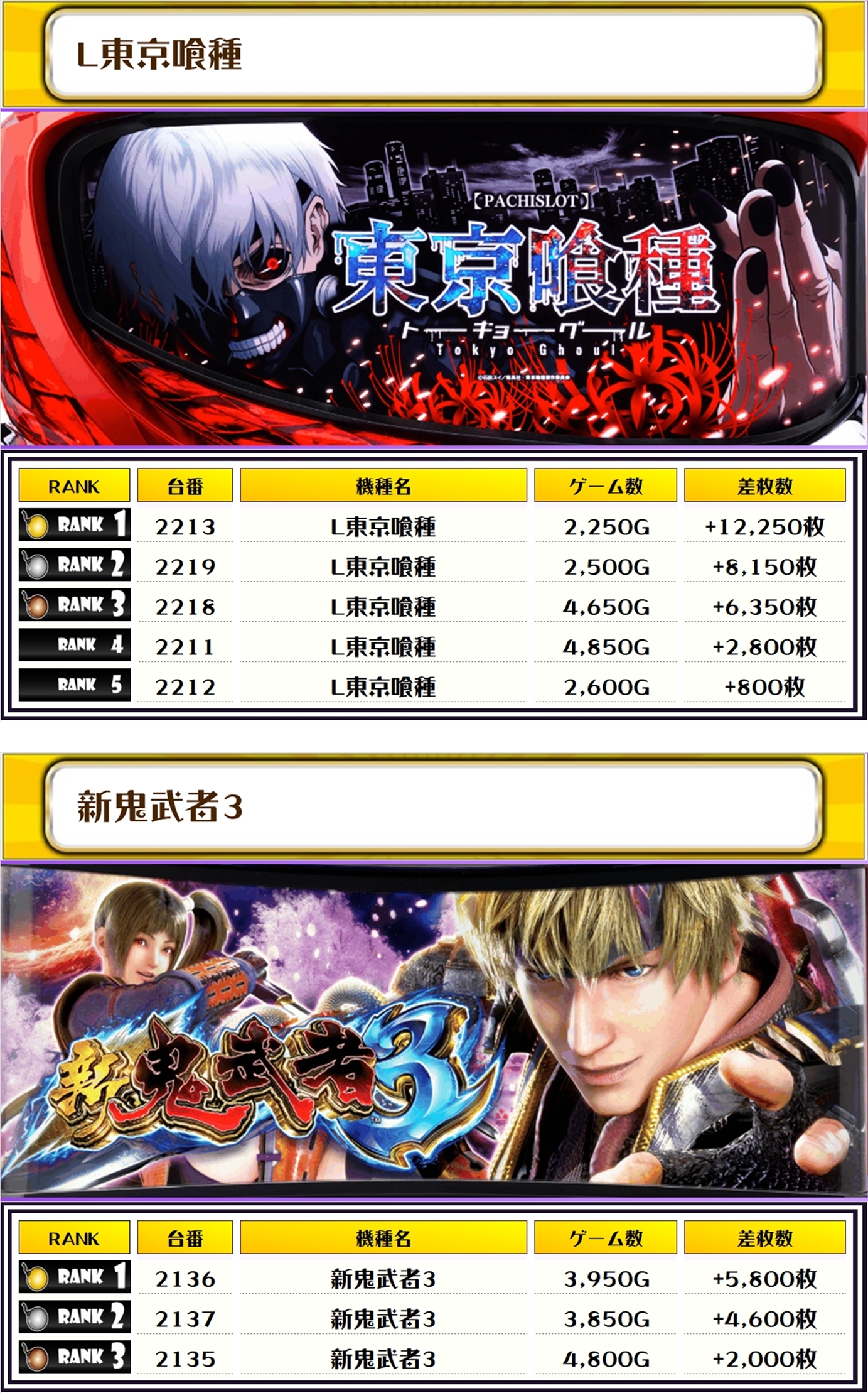 続く2位には【SBJ・2256番台】の+14,800枚、3位は【L東京喰種・2213番台】の+12,250枚がランクインじゃっ❗️