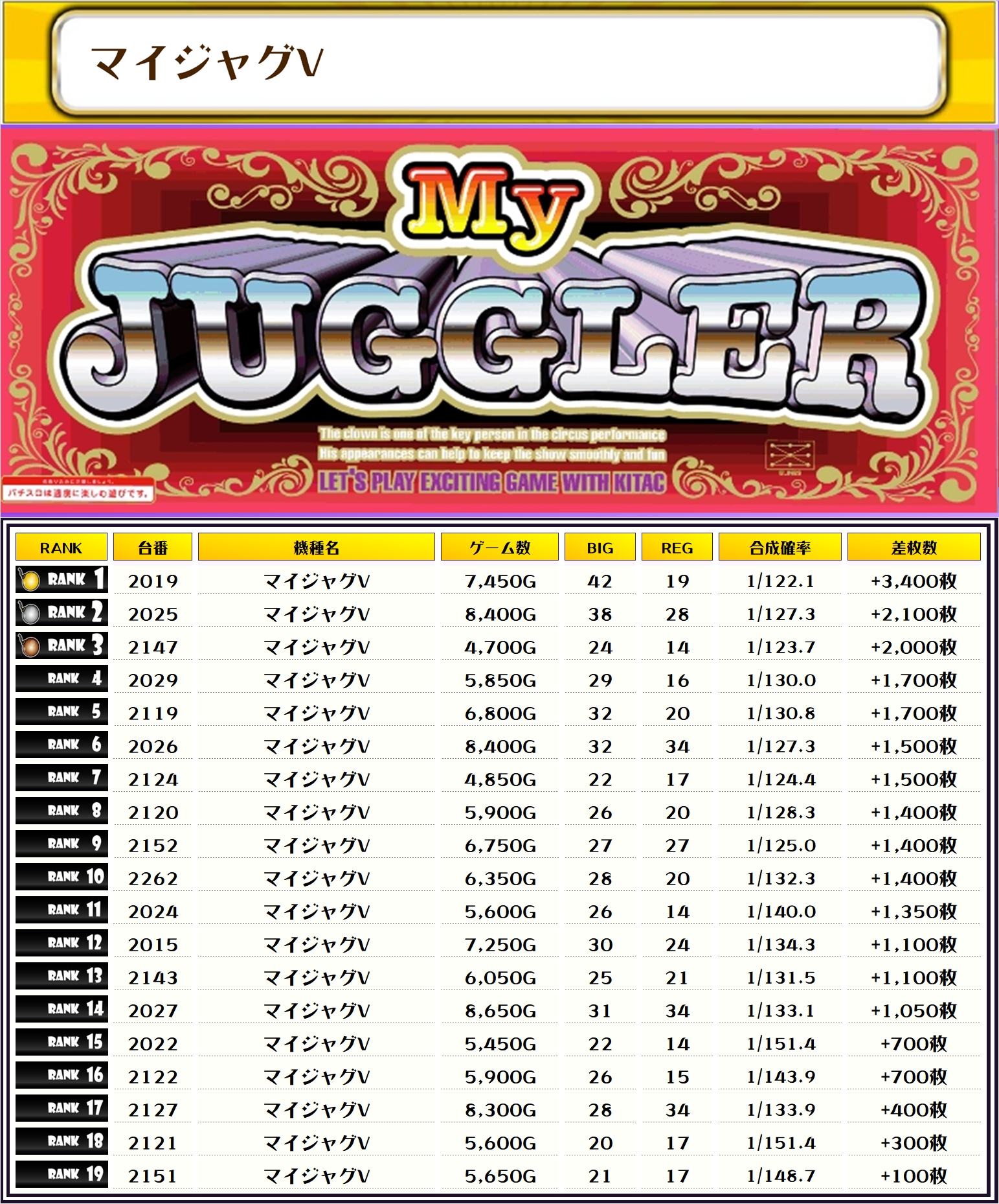 それでは早速、この日の機種別差枚ランキングをお伝えしていこうかの❗️