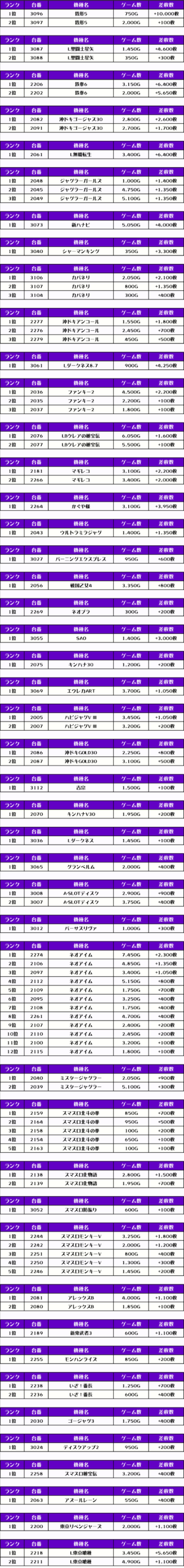 その他の機種の差枚はコチラですっ✨
