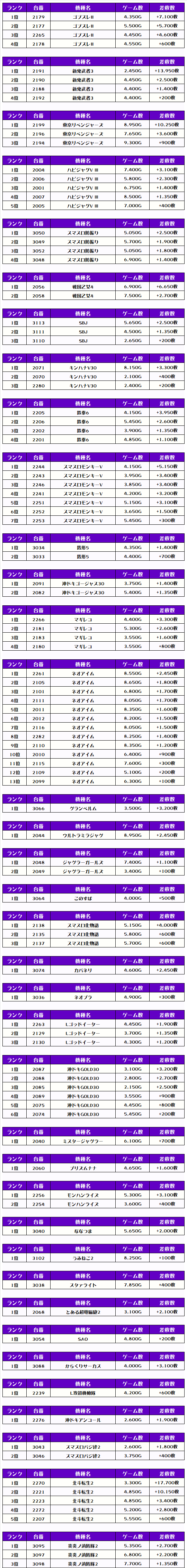 それでは、この日の【機種別差枚ランキング】を見ていきます❗️