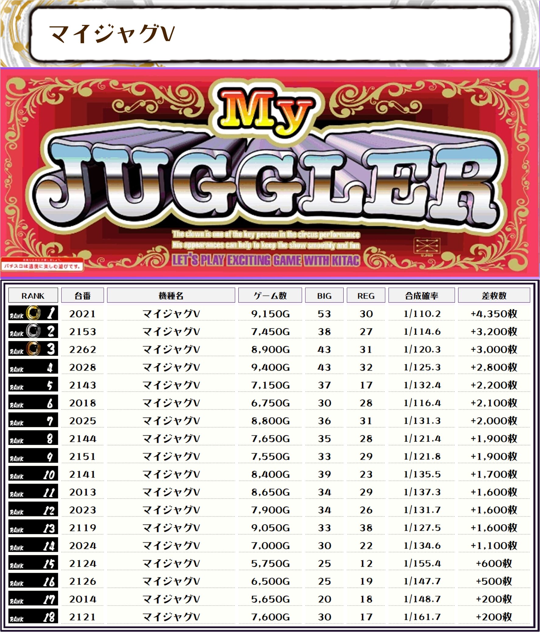 今回のランキングは万枚8台、ランキング19位まで5000枚オーバーと、前回同様ド派手な結果となりましたが、全体の差枚も前回とほぼ同じく約17万枚のプラスでした🔥🔥🔥🔥🔥🔥