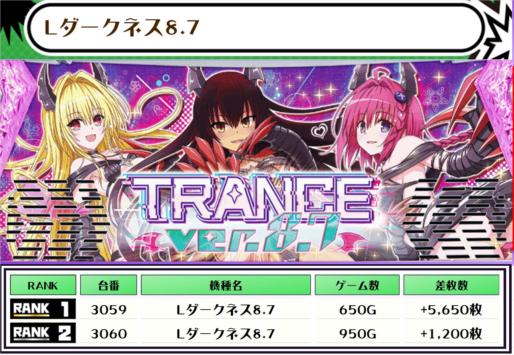 Lダークネス&8.7は全台が差枚プラスでした👀