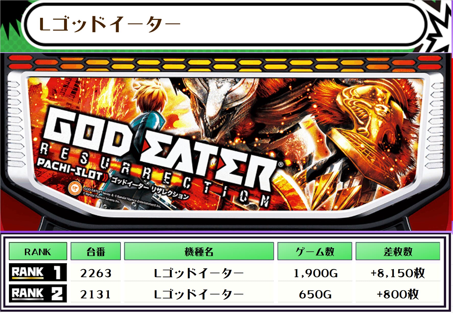 2位には【Lゴッドイーター・2263番台】の+8,150枚、そして3位には【L東京喰種・2220番台】の+7,950枚がランクインですっ🏆