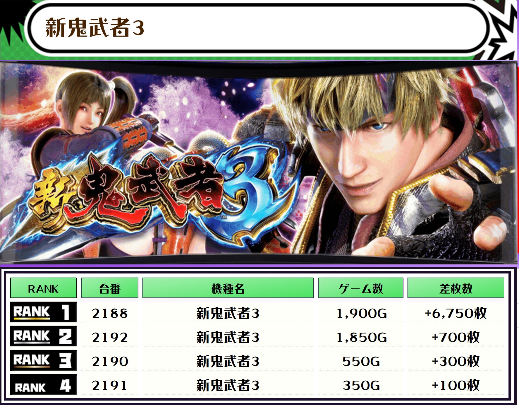 それでは、この日の【機種別差枚ランキング】を見ていきます❗️